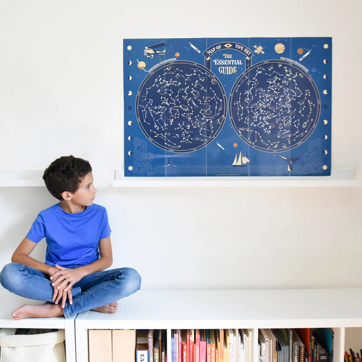Une affiche découverte en partenariat avec l’Atelier Cartographik. Avec cette affiche, les enfants se passionnent pour l’astronomie. Ils collent les autocollants sur la carte du ciel, et recréent les célèbres constellations.