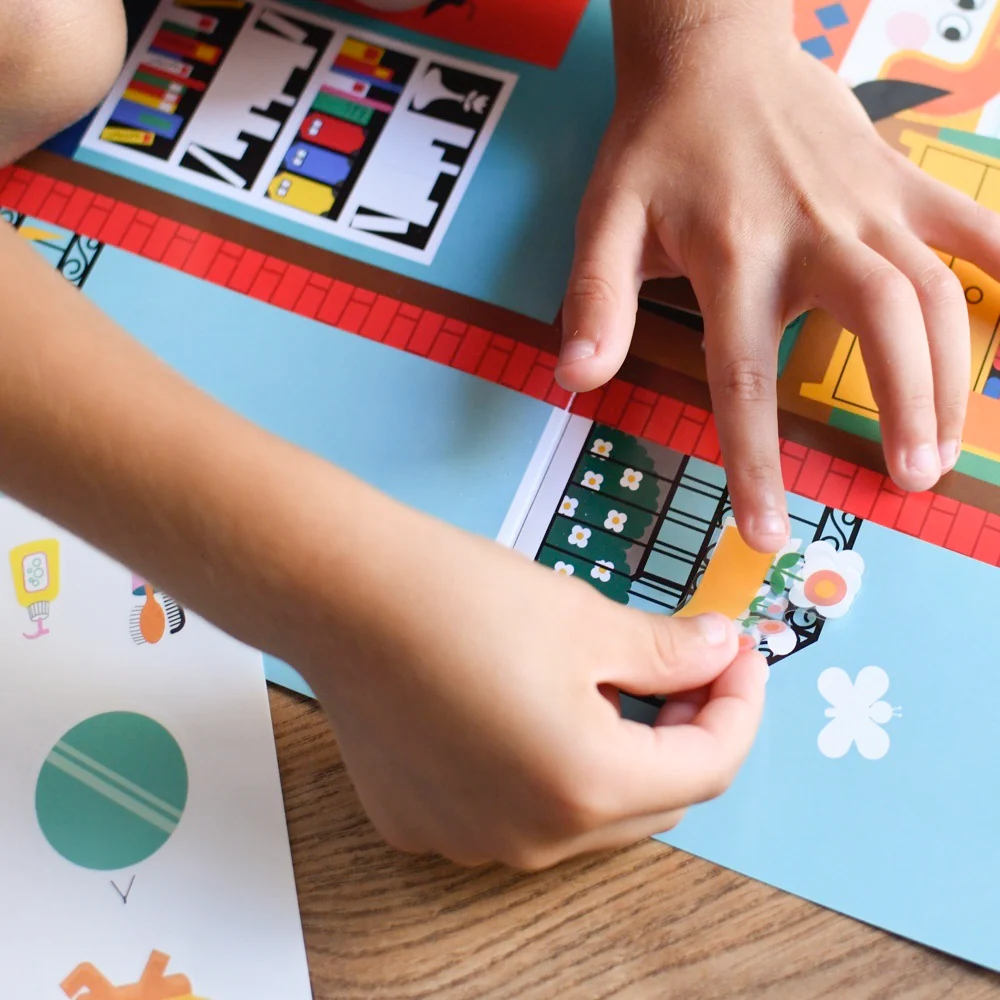 – Les enfants peuvent jouer à plusieurs et s’entraider, grâce au format géant (100 x 68 cm) et au grand nombre d’autocollants repositionnables.