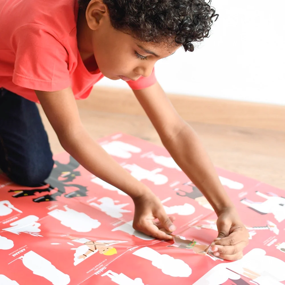 – Les enfants peuvent jouer à plusieurs et s’entraider, grâce au format géant (100 x 68 cm) et au grand nombre d’autocollants repositionnables.