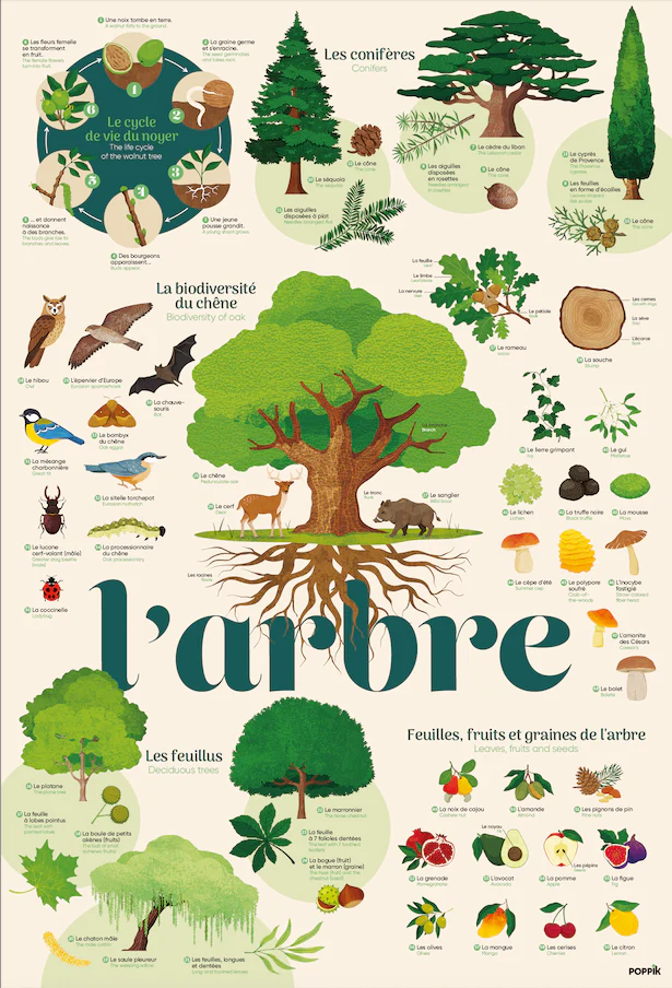 Avec ce poster géant, les enfants vont se passionner pour les arbres : quelles sont les catégories d’arbres ? Comment reconnaître les plus célèbres essences ? Quel écosystème entoure un grand arbre dans une forêt ? Les enfants collent les stickers sur le poster géant, et reconstituent ainsi une très belle affiche sur la nature.