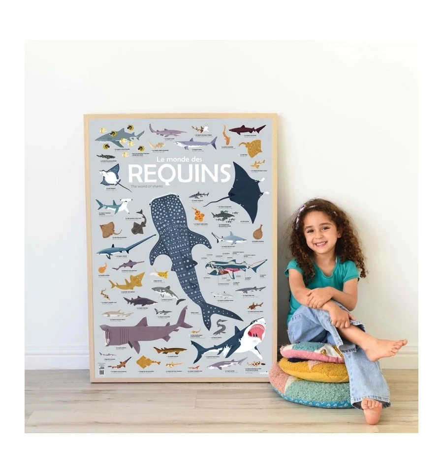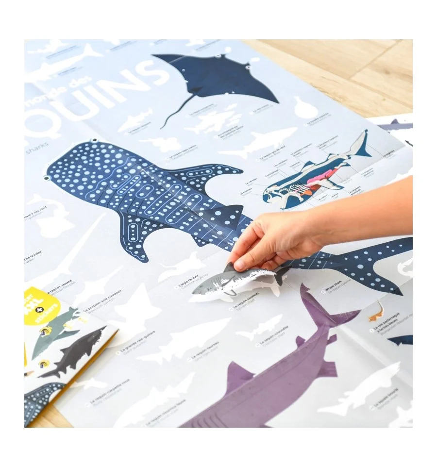 Affiche découverte et autocollants repositionnables XXL – Requins