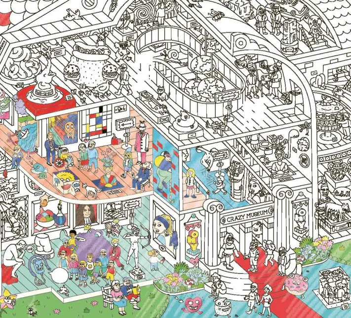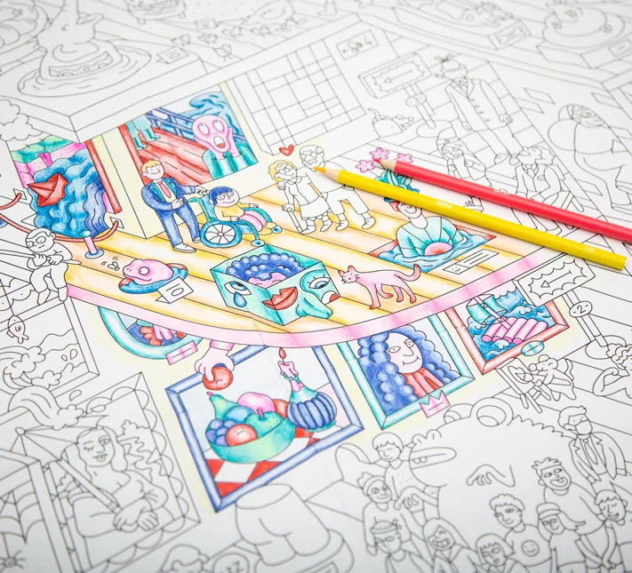 Sur le mur, au sol ou en nappe… des heures et des heures de dessins rigolos à faire seul ou en groupe.