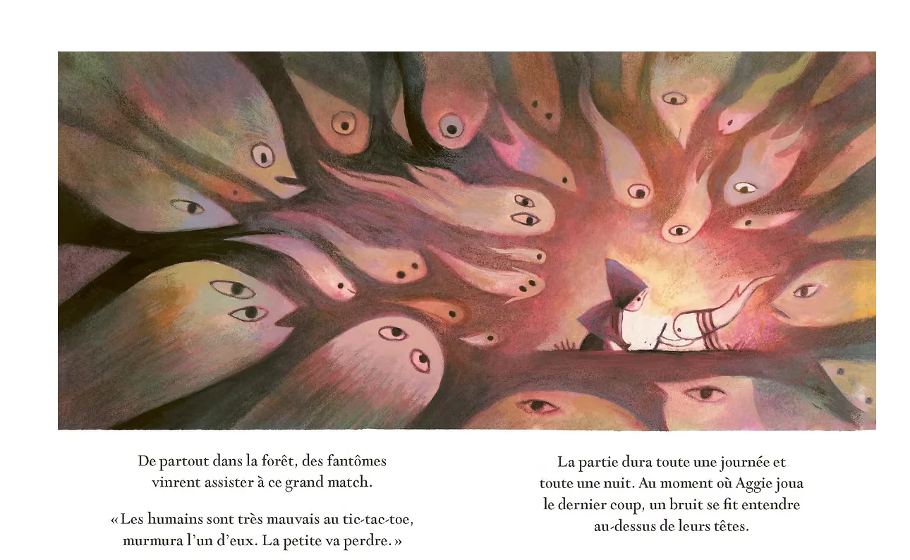 Jusqu’à l’arrivée du fantôme, Aggie vivait seule et heureuse. Lorsqu’il fait irruption, il sème le désordre dans sa vie et sa maison. Elle établit des règles que le fantôme refuse de suivre. Ils vont même jusqu’à jouer une partie endiablée de tic- tac- toe, toute une nuit, censée les mettre d’accord. Cela ne fonctionne toujours pas. Pourtant le lendemain, le fantôme a disparu et Aggie découvre qu’il lui manque. Elle lui dicte alors une règle ultime, celle de ne plus jamais venir la voir. Le fantôme se réjouit de l’enfreindre, mais de temps en temps seulement, comme Aggie l’avait espéré.