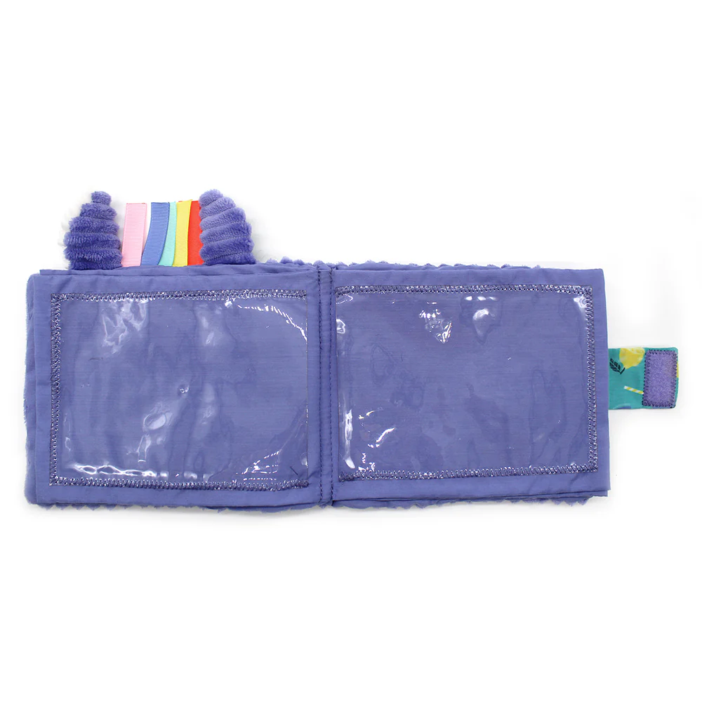 L’album photo pour bébé et enfant Kiprokos le zèbre dispose de 10 pochettes plastique pour y insérer ses photos les plus dingos ! Grâce à ces pochettes, bébé pourra consulter son album à volonté et ce sans abîmer ses plus beaux souvenirs. L’album photo bébé est violet, coloré et en velours côtelé .
