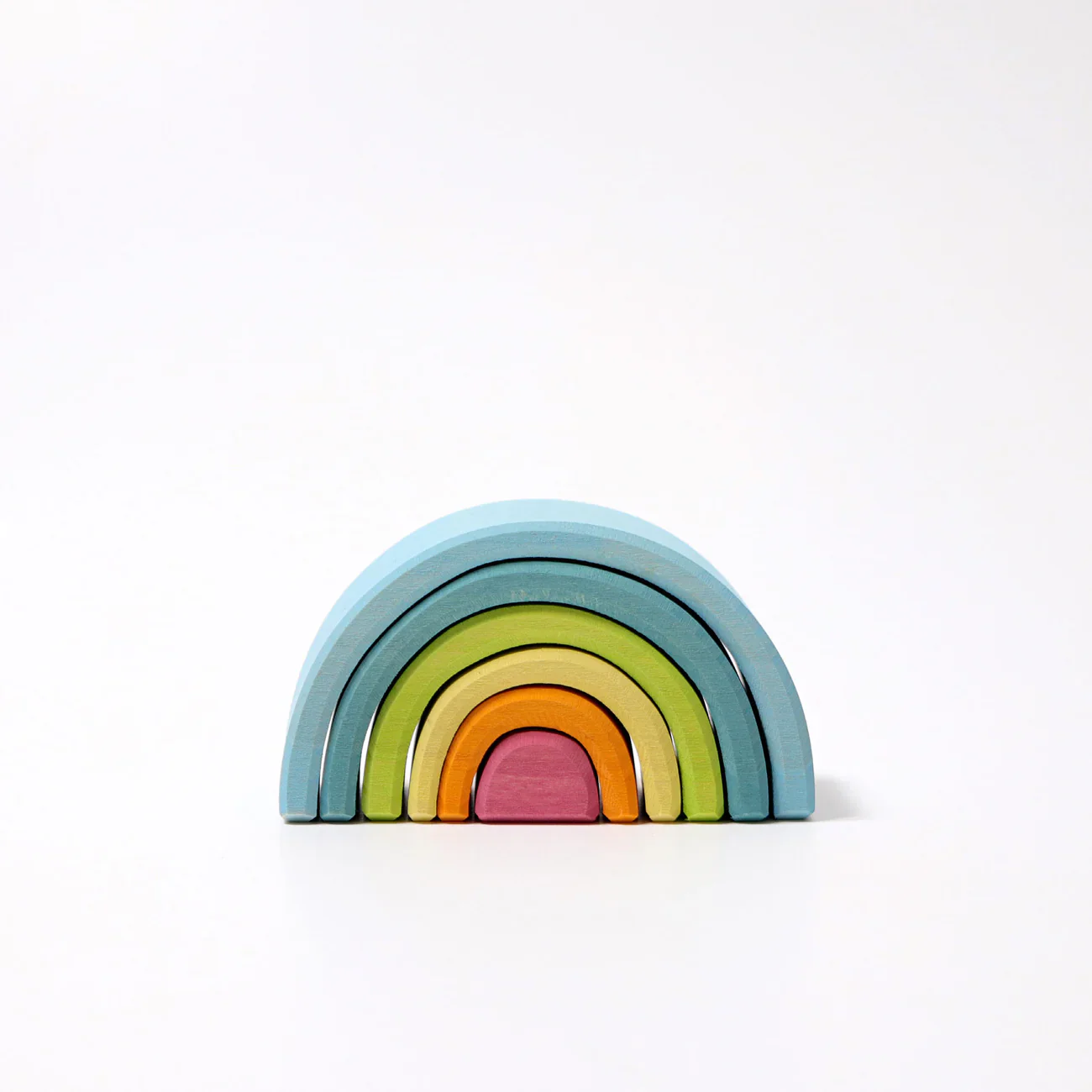 Cet arc-en-ciel empilable offre mille et unes possibilités pour les touts-petits comme pour les bambins! Évolutif, il peut être utilisé tout d’abord comme jouet à empiler ou jouet d’équilibre, et peut éventuellement se transformer en petit pont pour les voitures, mobilier pour poupées, sculpture abstraite, etc! Un jouet polyvalent à intégrer au plus vite à la salle de jeu!
