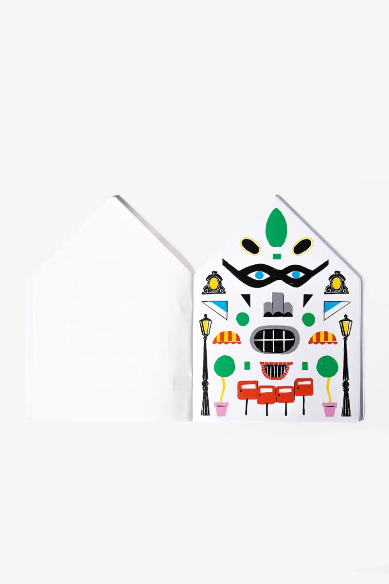 Cahier d’activités pour enfants composé de 18 visages-maisons à colorier et à sticker ! Inventer des façades de maisons imaginaires et poétiques en utilisant sa créativité et son humour fournira à votre enfant des moments de détente et de créativité. Il pourra ainsi se familiariser, et peut-être se passionner pour l’architecture en imaginant des visages aux expressions très variées : une maison en bord de mer ou en ville, des yeux rieurs, un sourire mutin… Tous les stickers ont une forme d’élément architectural, naturel ou urbain, qui, une fois assemblés, laisse deviner un visage.