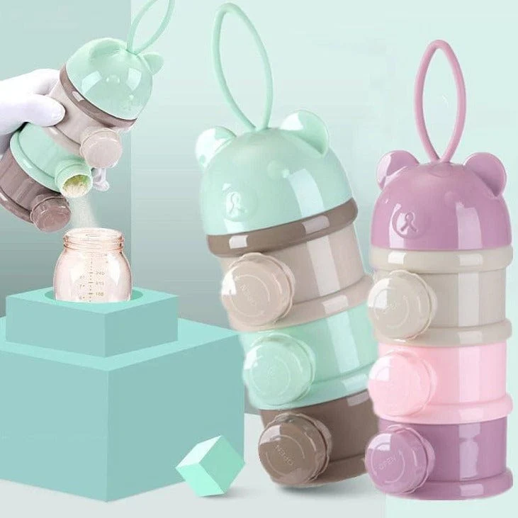 Boîte de rangement de nourriture pour bébé | Boîte de rangement pour bébé de style ours portatif à 3 couches, lait en poudre de dessin animé de grain de base bébé, récipient à collation