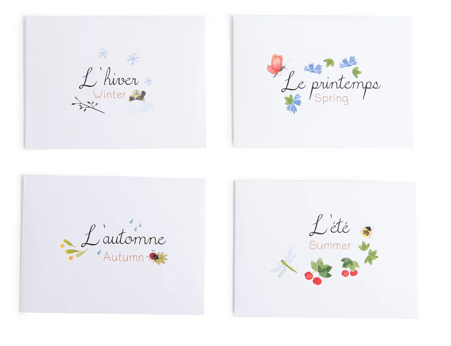 Le grand calendrier magnétique des saisons Le Jardin du Moulin par Moulin Roty comprend plus de 100 magnets pour se repérer dans le temps (date, météo, lune) et apprendre les saisons en habillant l’arbre illustré au fil de l’année. Il comprend aussi 4 enveloppes pour ranger chaque saison. Grâce à ce calendrier riche en détails, votre enfant se familiarisera avec la notion du temps qui passe et apprendra de nouveaux mots, aussi bien en français qu’en anglais !
