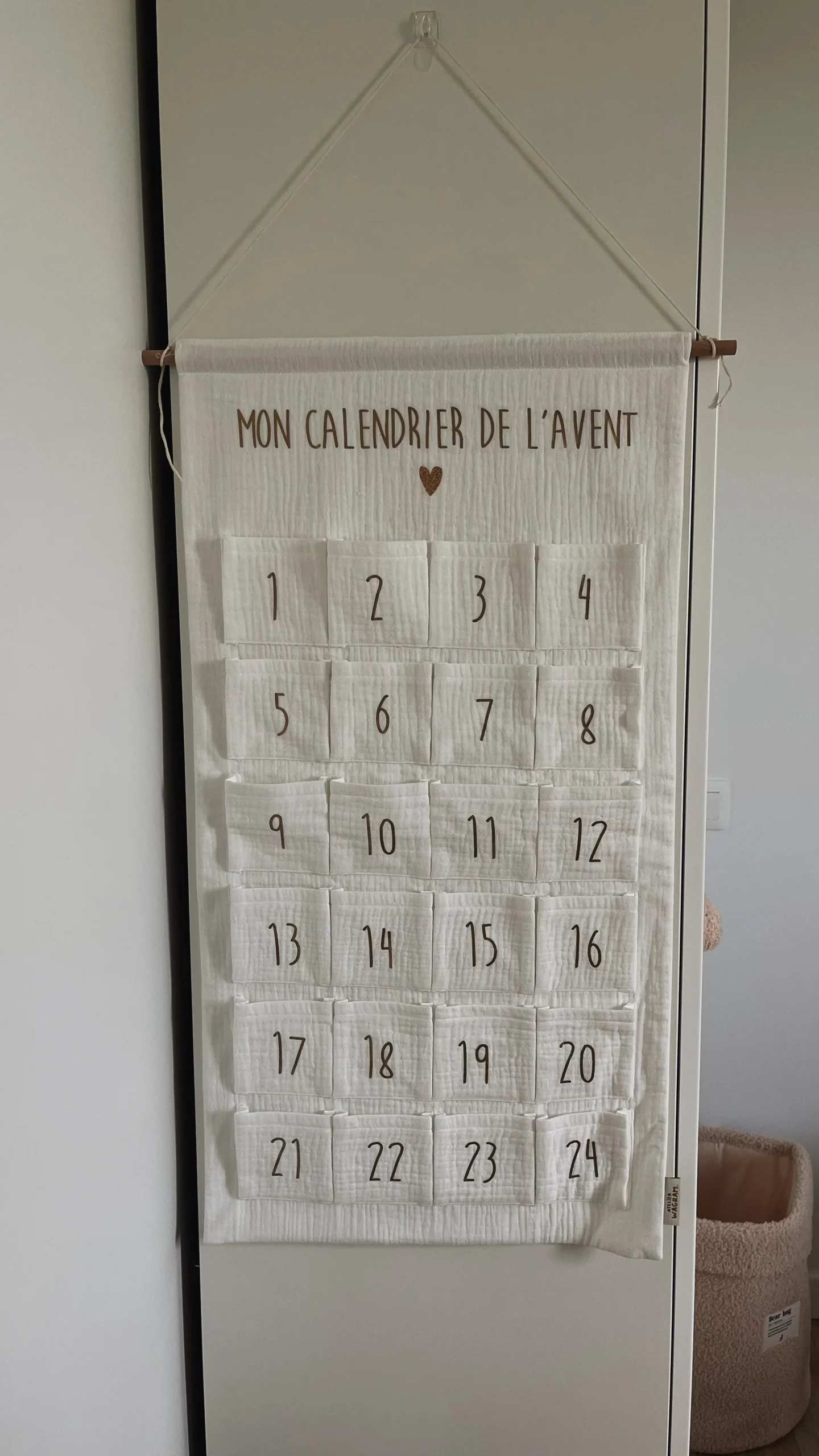 Calendrier de l’avent en gaze de coton.