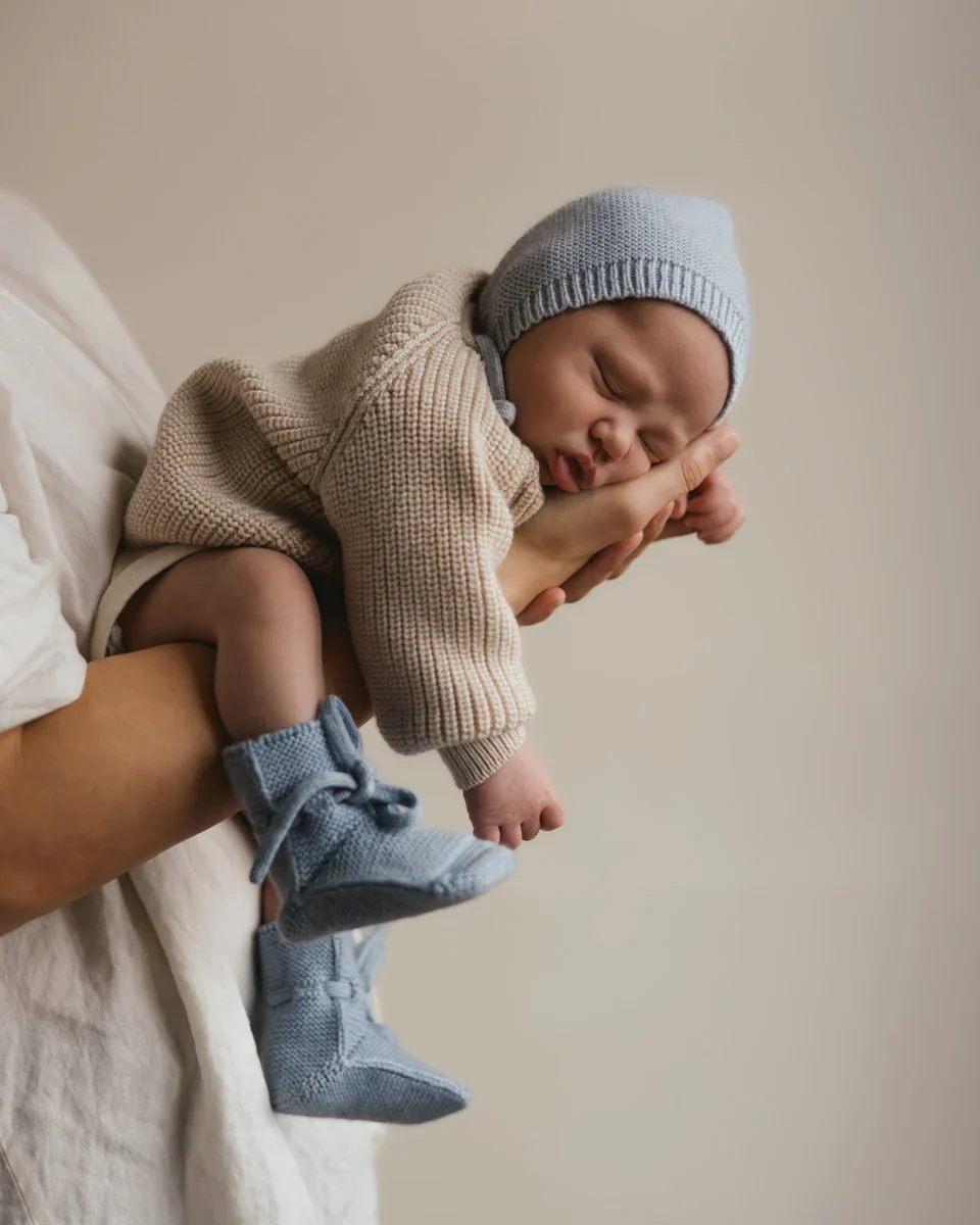 Un adorable cardigan tricoté d’une seule pièce, offrant un confort exceptionnel et une expérience sensorielle très agréable pour les bébés. Encolure large et élastique dotée d’un fil élastique subtil tricoté Boutons en bois 100 % laine mérinos italienne extra fine (Oeko-Tex, sans mulesing). Fabriqué en Belgique dans une petite usine familiale Lavage : magique! la […]
