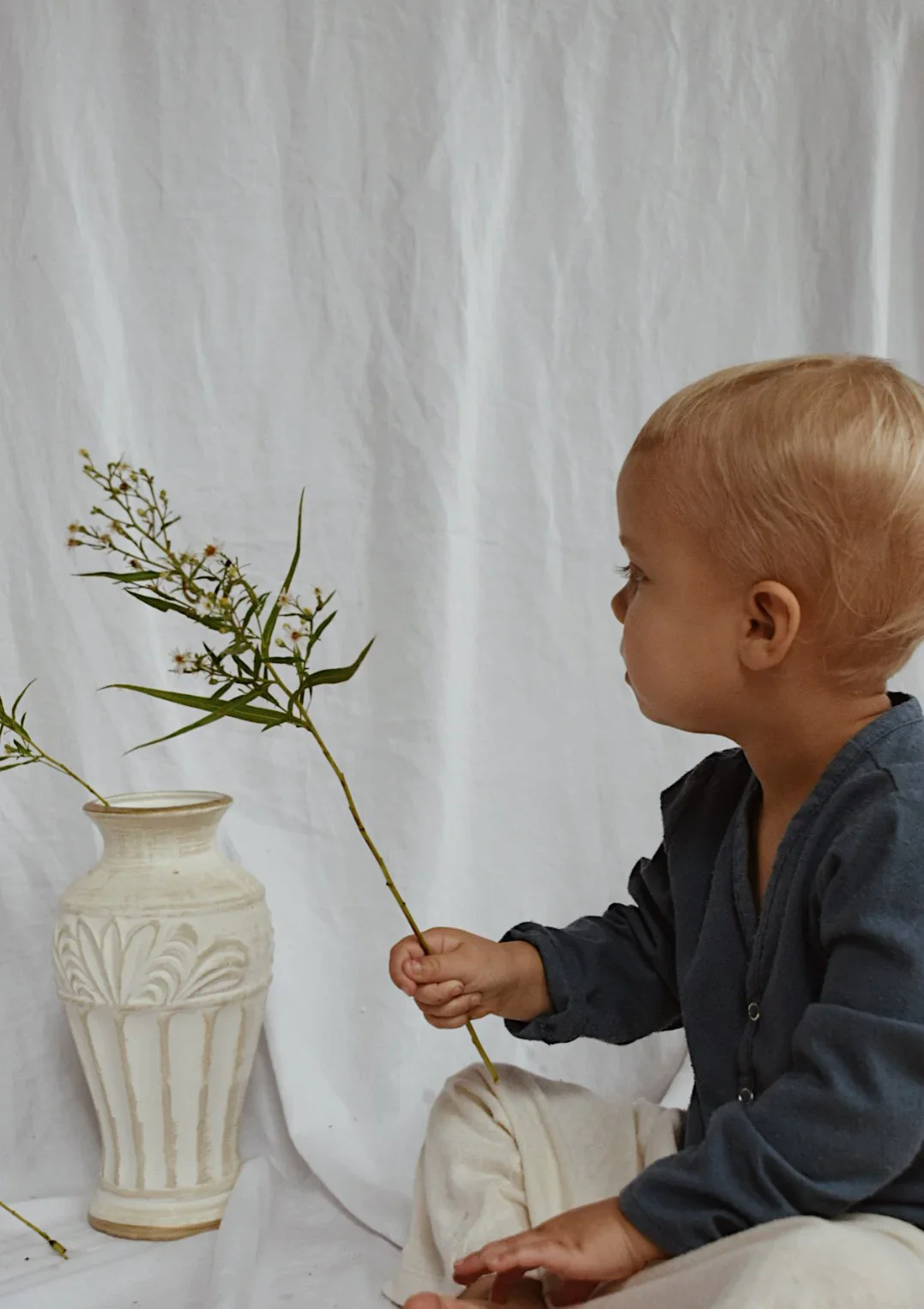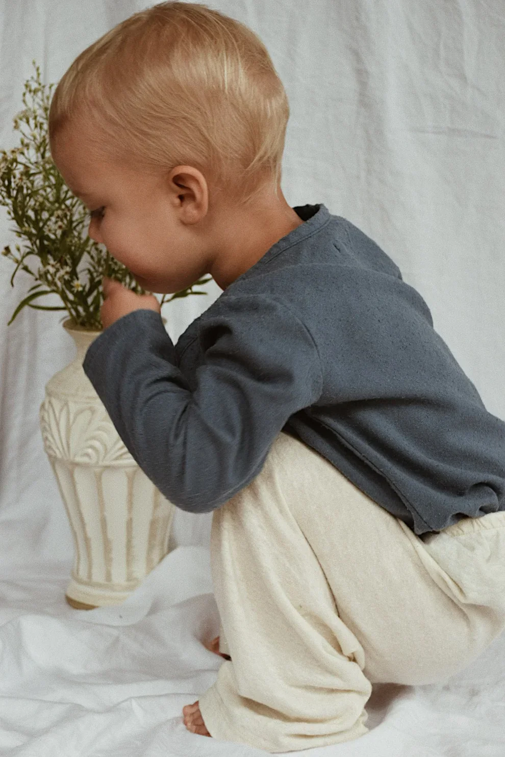 Un cardigan de tous les jours en soie bleu avec une coupe classique. Il s’enfile facilement et offre une infinité d’options de style. Portez-le en solo, à moitié ouvert ou complètement ouvert. Soie brute bleu tuile Fermeture à cinq boutons-pression Manches longues qui peuvent être pliées ou dépliées pour grandir avec votre enfant Laver à […]