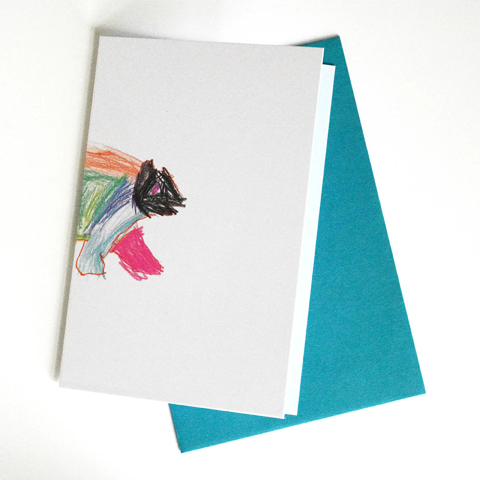 Une carte de souhaits faite à partir du chef-d’œuvre d’un enfant. Pour souligner les petits et grands événements.