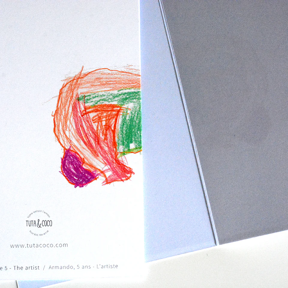 Une carte de souhaits faite à partir du chef-d’œuvre d’un enfant. Pour souligner les petits et grands événements. Une carte avec son enveloppe. 6″x 4 » Intérieur vierge Artiste: Armando, 5 ans. Imprimé à Montréal À propos de Tuta & Coco: Tuta & Coco propose plusieurs alternatives pour préserver les dessins de votre enfant sous […]