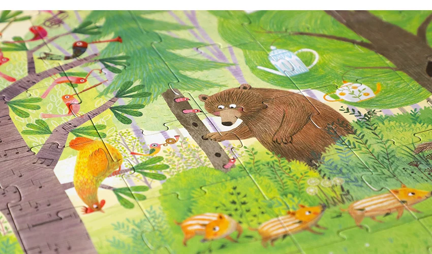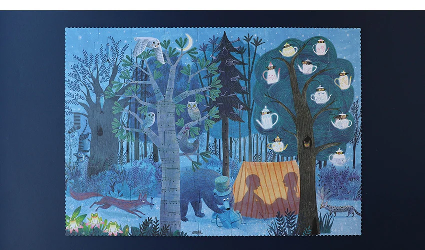 Un puzzle réversible coloré de 54 pièces pour aider votre enfant à découvrir la forêt pendant la journée et comment elle change à la tombée de la nuit. Avec l’œuvre de l’illustratrice Mar Ferrero