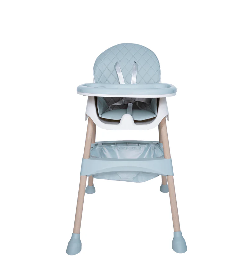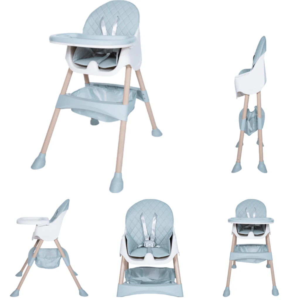 Chaise haute évolutive réglable avec Roues BLEU CIEL