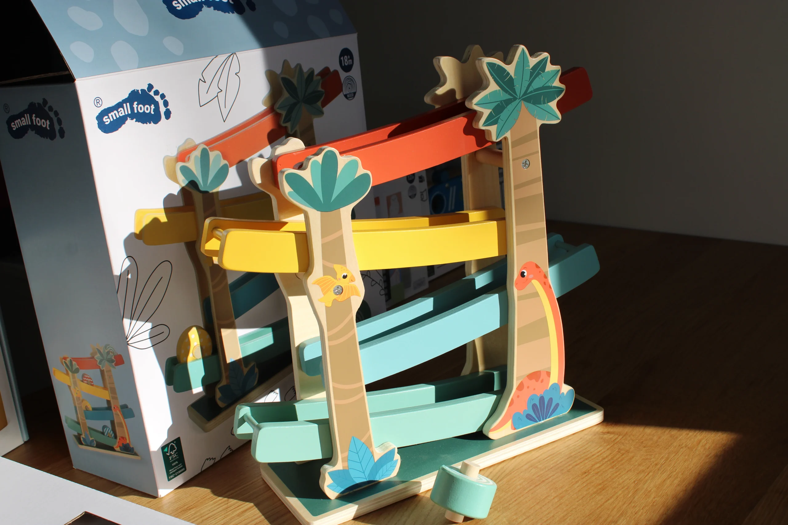Décoré de deux adorables dinosaures, ainsi que de palmiers et de feuilles, ce circuit crée un univers ludique et captivant pour les petits. Sa base large assure une excellente stabilité, garantissant des jeux en toute sécurité.