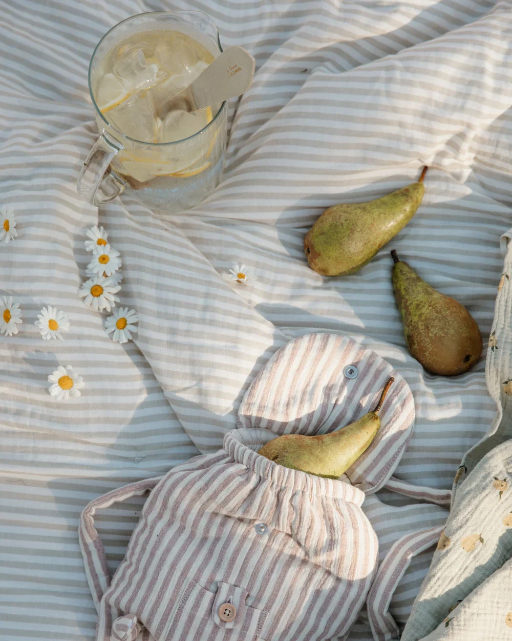Cette couette rembourrée toute douillette est fait de mousseline de coton douce et aérienne de la plus grande qualité: on croirait être enveloppé d’un nuage! Taille parfaite pour un lit de bébé ou un merveilleux matelas d’éveil.