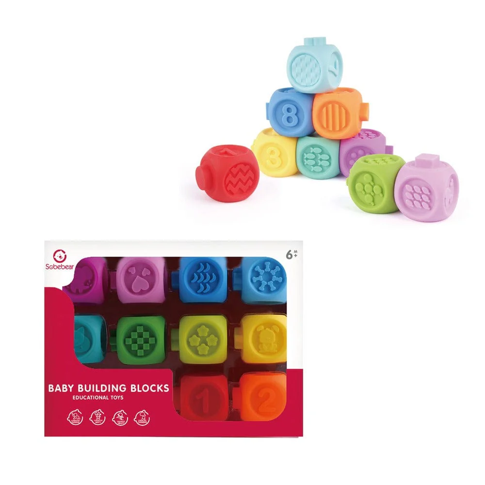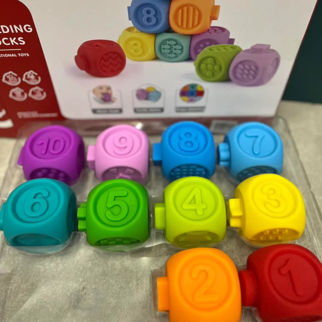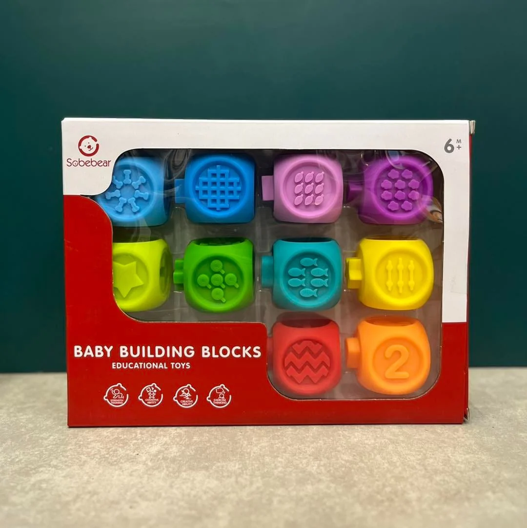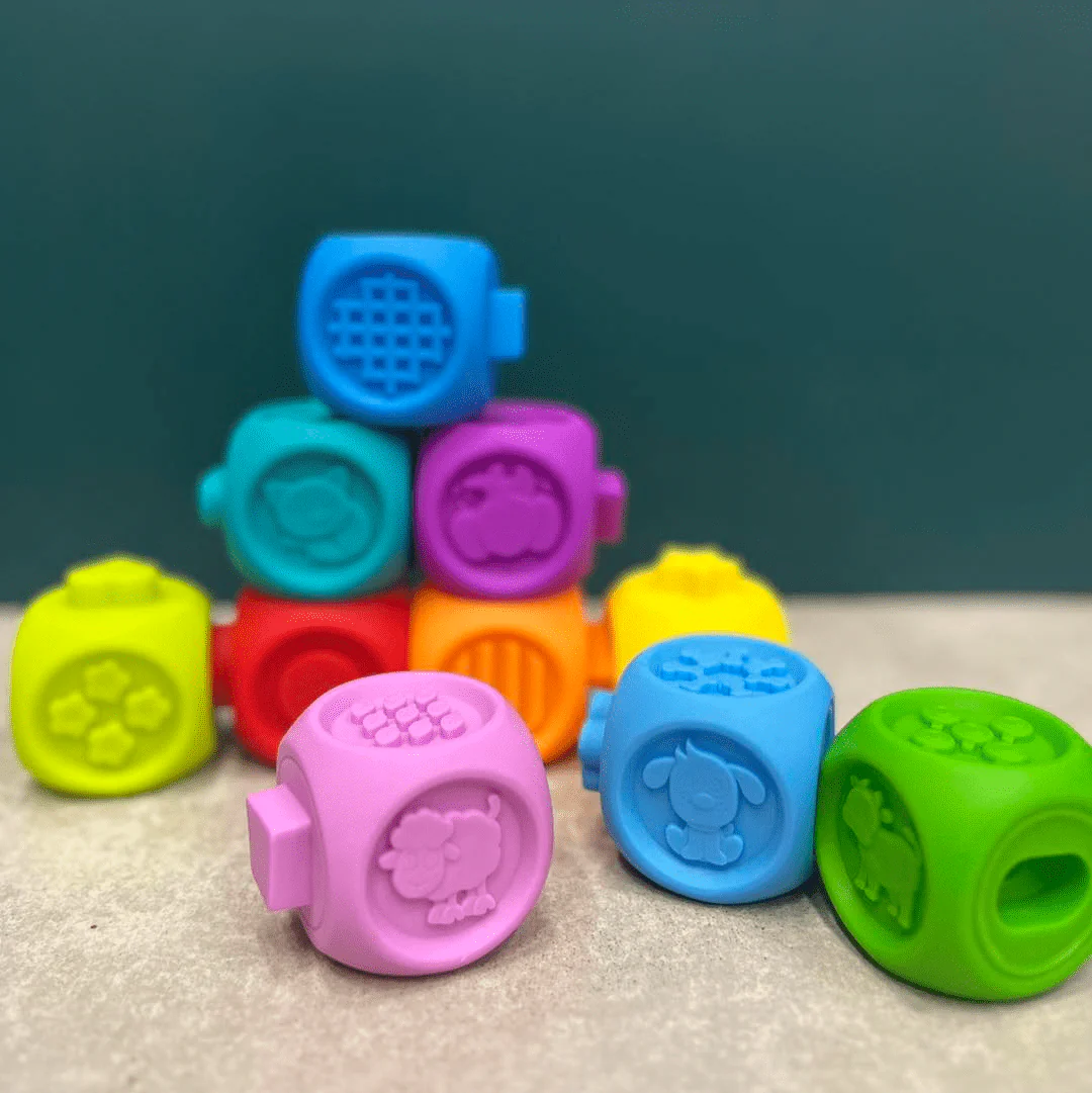 Cubes sensoriels Montessori bébé silicone – 10 pièces