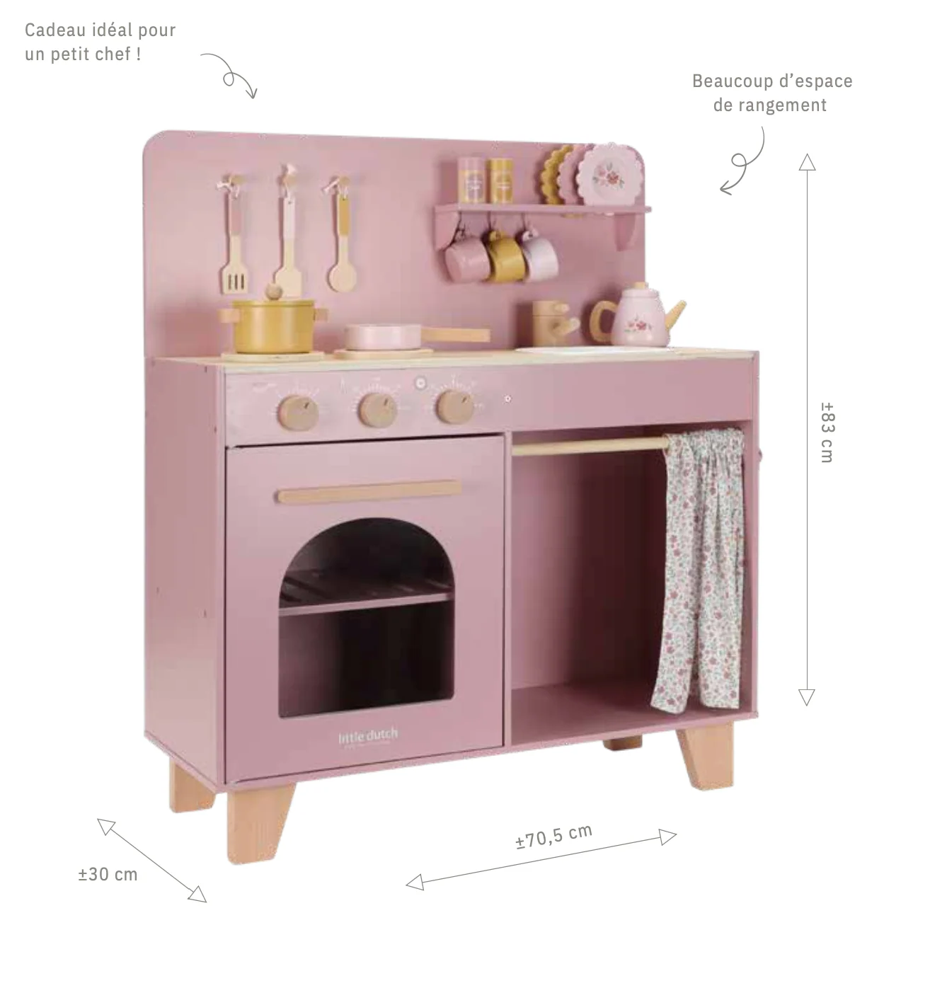 Petits chefs, préparez-vous ! Avec cette adorable cuisine en bois rose, les enfants peuvent plonger dans le monde de la cuisine et de la pâtisserie.