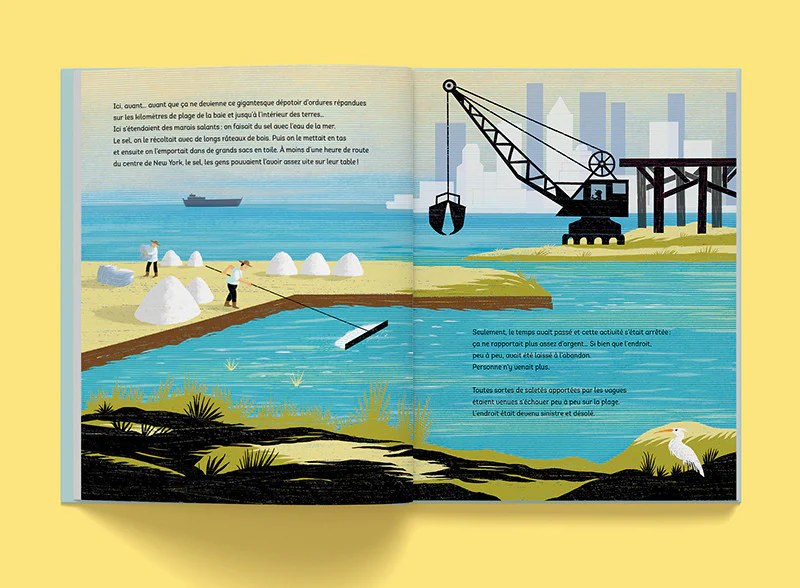 Des clous rouillés, des fruits pourris, des matelas crevés, des pneus usés… Voilà tout ce qui reste des marais salants qui bordaient New York et que la ville a transformés en décharge. Jusqu’à ce qu’un dénommé Herbert Johnson décide qu’il est temps de faire reprendre ses droits à la nature. Inspiré de l’histoire vraie d’un pionnier de l’écologie, cet album tout en poésie nous rappelle comment chacun, à son échelle, peut accomplir de grandes choses pour la planète.