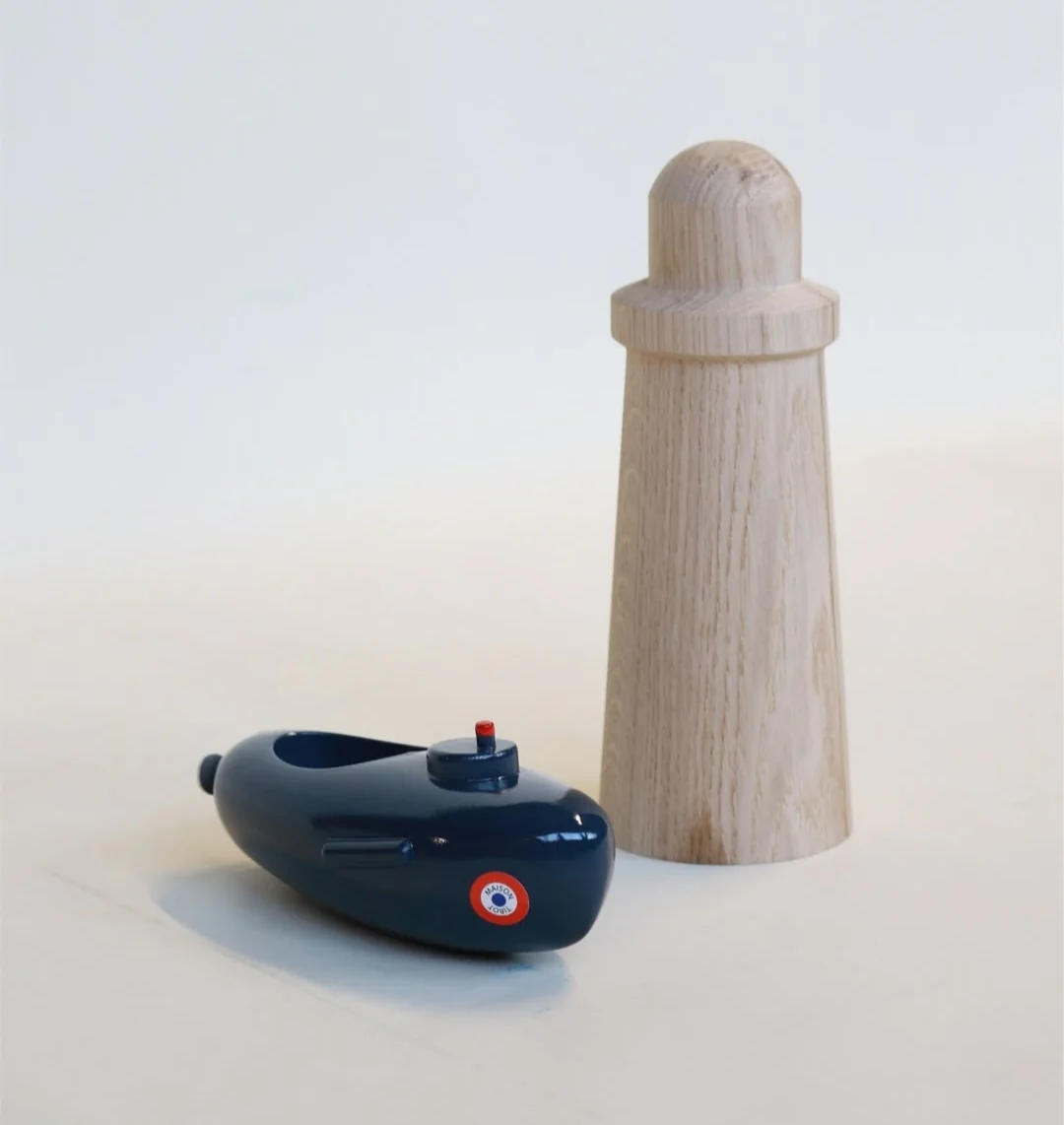 Conçu en Bretagne, ce jouet promet des heures de jeu dans l’eau et dans la chambre et s’avère aussi être une très jolie décoration de chambre d’enfant. Son poste de pilotage à l’arrière permet aux enfants d’y poser leur figurine préférée.