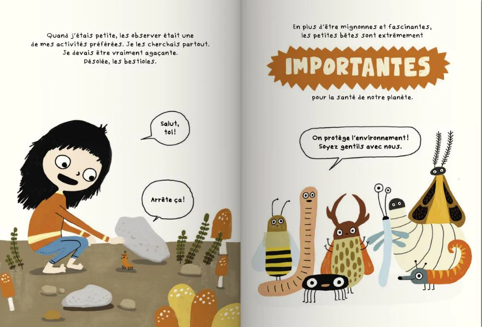 Après s’être intéressée aux champignons dans Le fan club des champignons, l’autrice-illustratrice Elise Gravel récidive avec Le fan club des petites bêtes, un documentaire où elle partage toutes sortes de faits intéressants à propos du merveilleux monde des insectes. Certaines de ces bestioles sont si uniques et étranges qu’on pourrait croire qu’elles sont des extraterrestres.