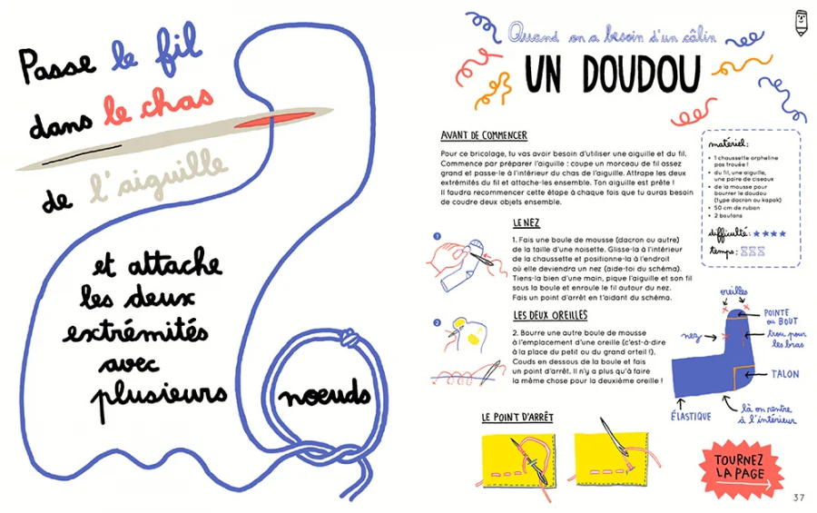 Une cinquantaine d’activités gaiement illustrées, pour permettre aux enfants de construire des objets, de s’initier aux joies de la peinture ou de la couture, de découvrir les ressources de la nature et de fabriquer leurs propres jouets. On pourra ainsi fabriquer un bateau à moteur sans moteur, un doudou à partir d’une chaussette usée, une maison de poupée ou un garage, un mini-labo de petit chimiste, des cartes pop-up pour ses amis, des couronnes de fleurs quand vient le printemps et même du papier cadeau personnalisé !