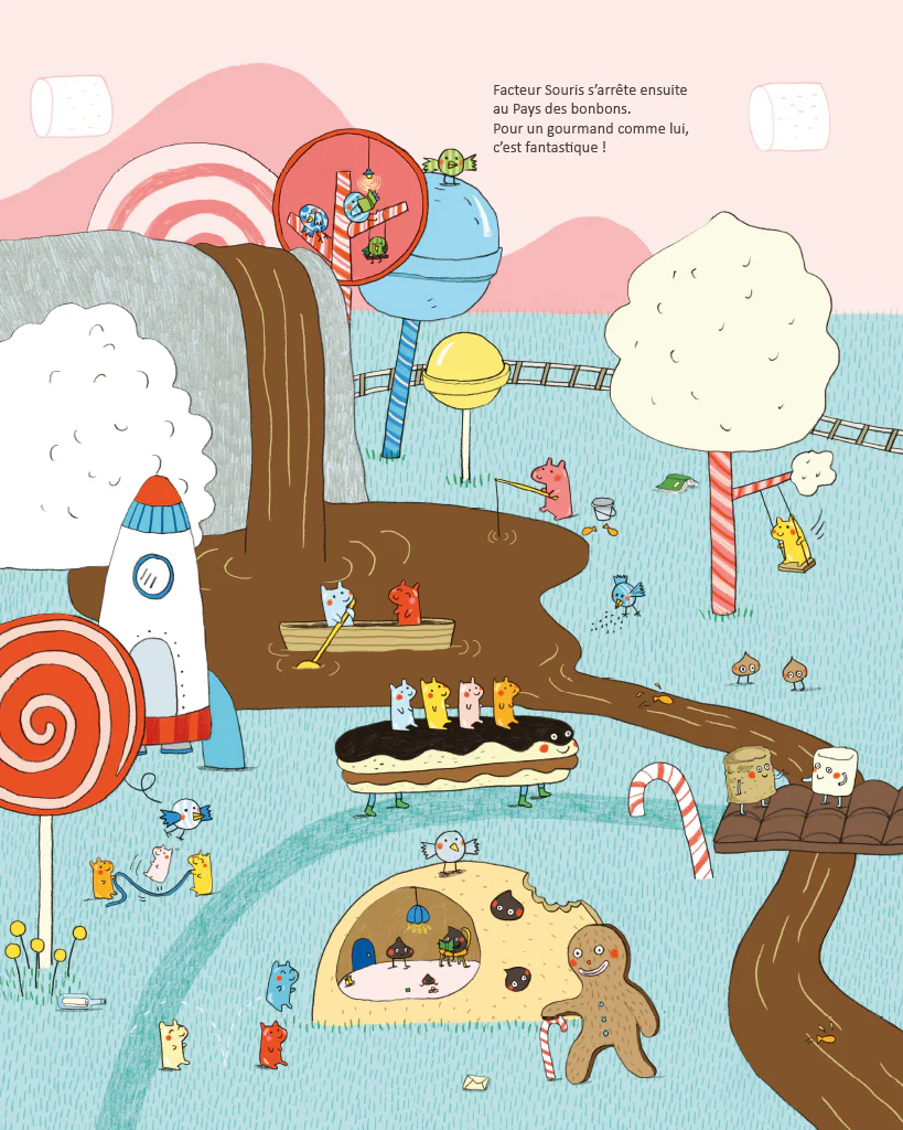 Au pays des bonbons, chez les sirènes ou les monstres, 20 000 lieues sous les mers ou très haut dans les nuages, rien n’arrête Facteur Souris quand il s’agit de distribuer ses colis !