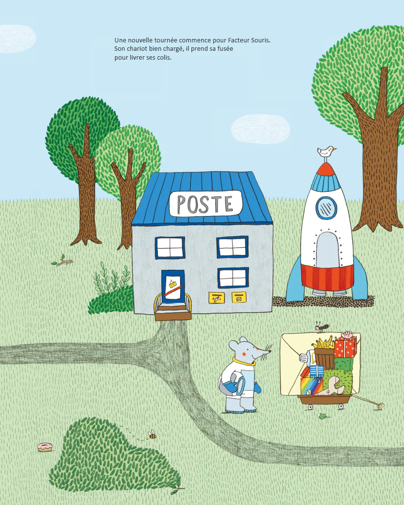 Facteur Souris se lève comme tous les matins pour sa tournée, mais ce matin, au lieu de prendre son camion de postier, il décolle en fusée…