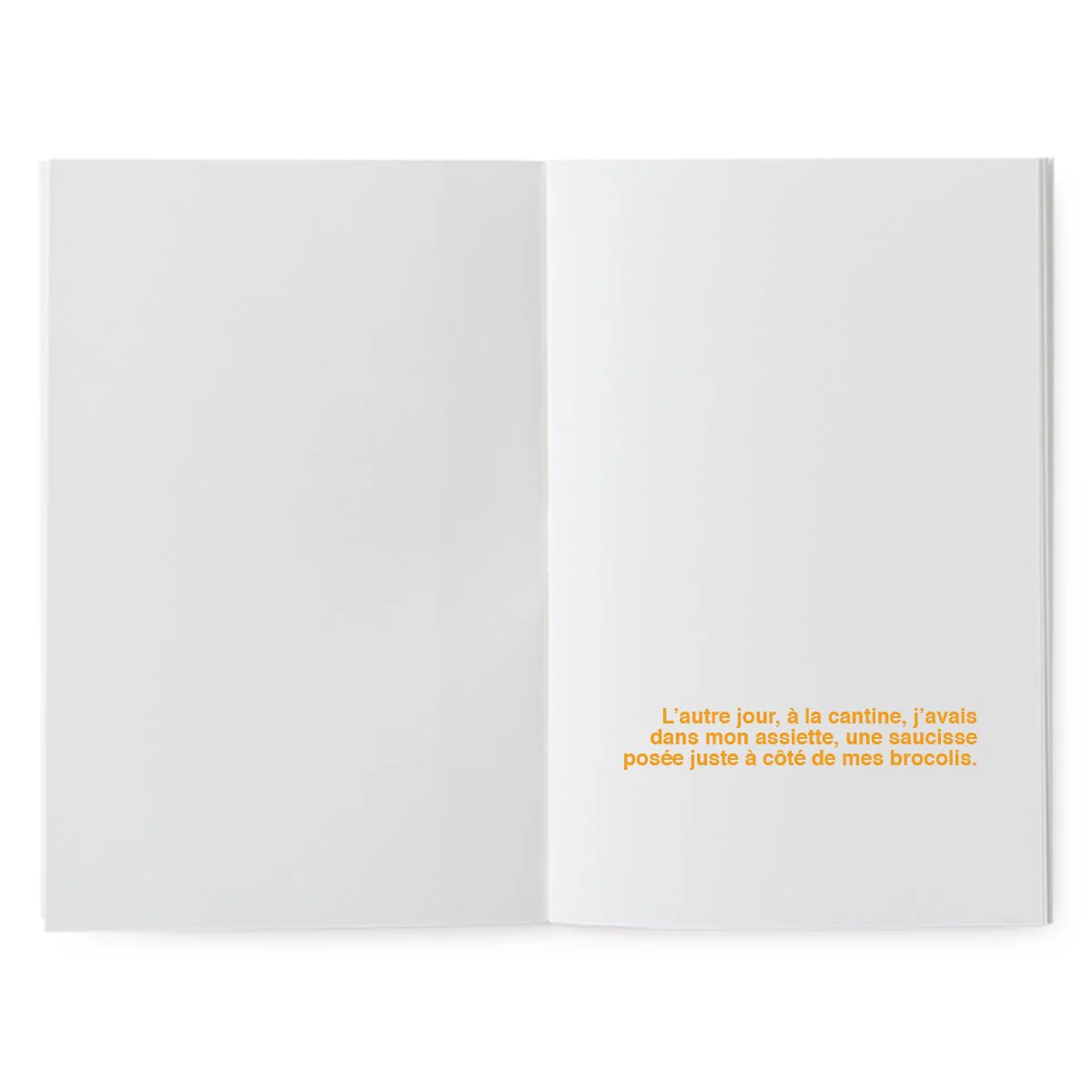 « L’autre jour à la cantine, j’avais dans mon assiette, une saucisse posée juste à côté de mes brocolis … »