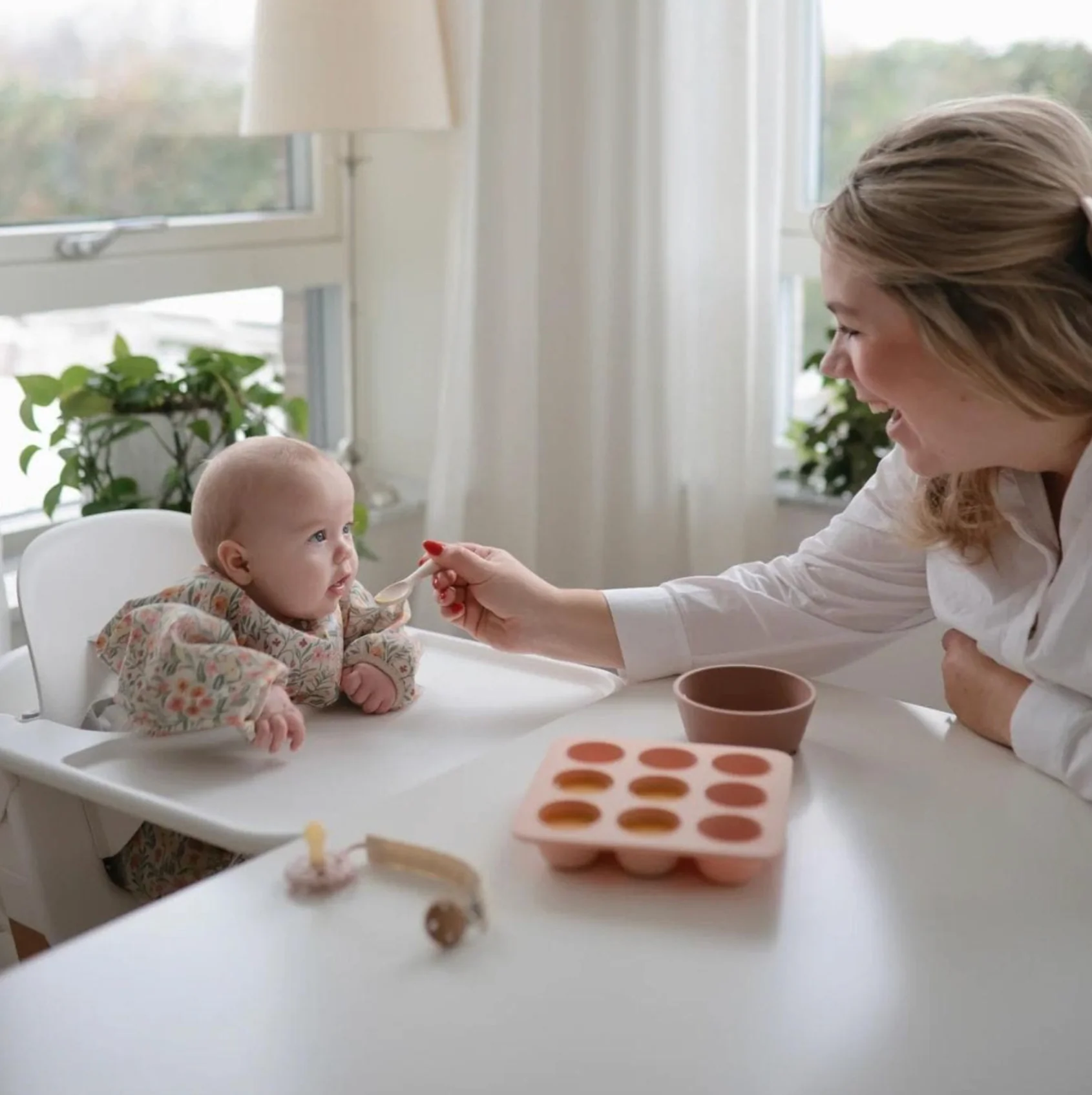 La cuillère est fabriquée en silicone de qualité alimentaire et est douce pour les gencives sensibles et les premières dents.