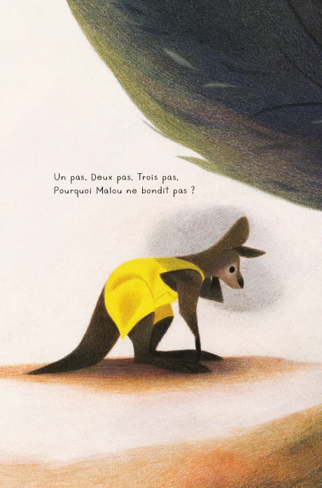 Aucun autre kangourou ne bondit comme le petit Malou. Un bond, deux bonds, trois bonds : il s’élance toujours plus haut et toujours plus fort. Mais un jour, sans comprendre ce qui lui arrive, Malou ne saute plus. Un nuage gris s’est installé sur lui…