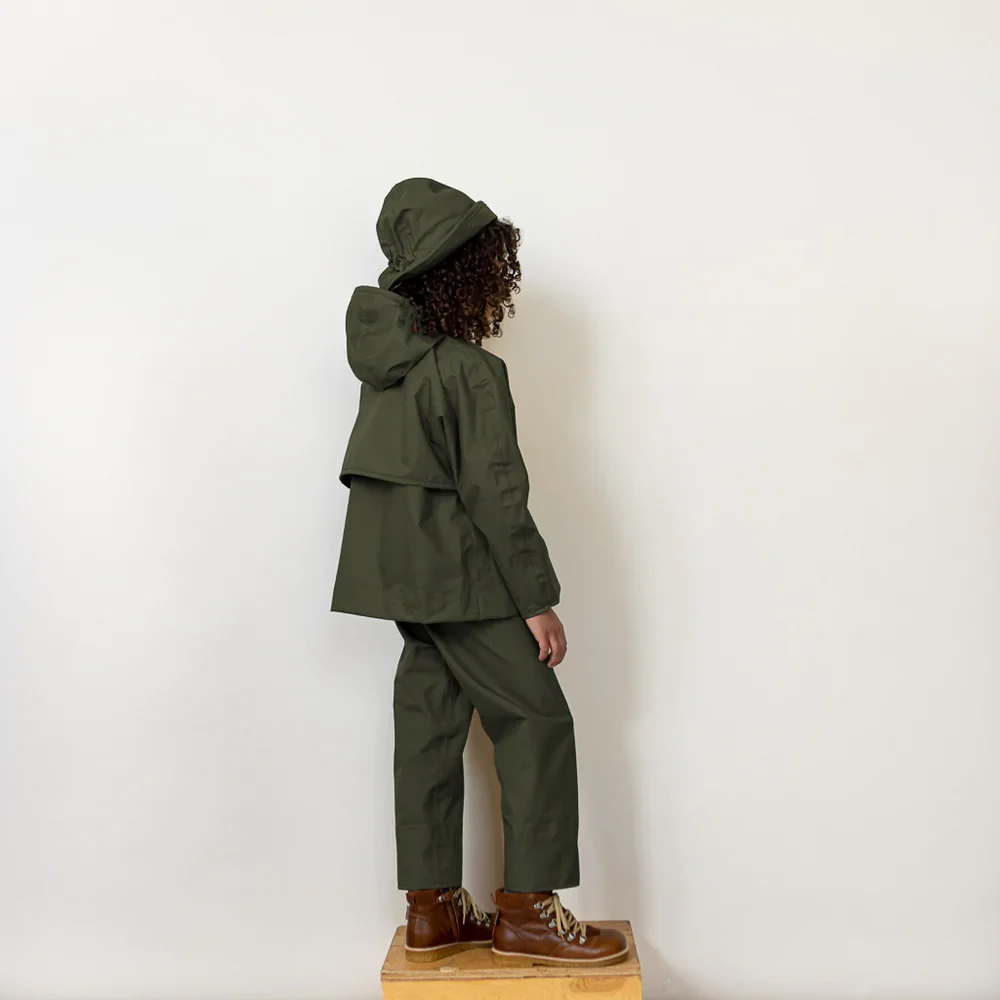La capuche attachée et l’encolure plus haute gardent le vent à distance, les grandes poches avant permettent de collecter des trésors et les boutons-pression en laiton encouragent l’habillage indépendant.