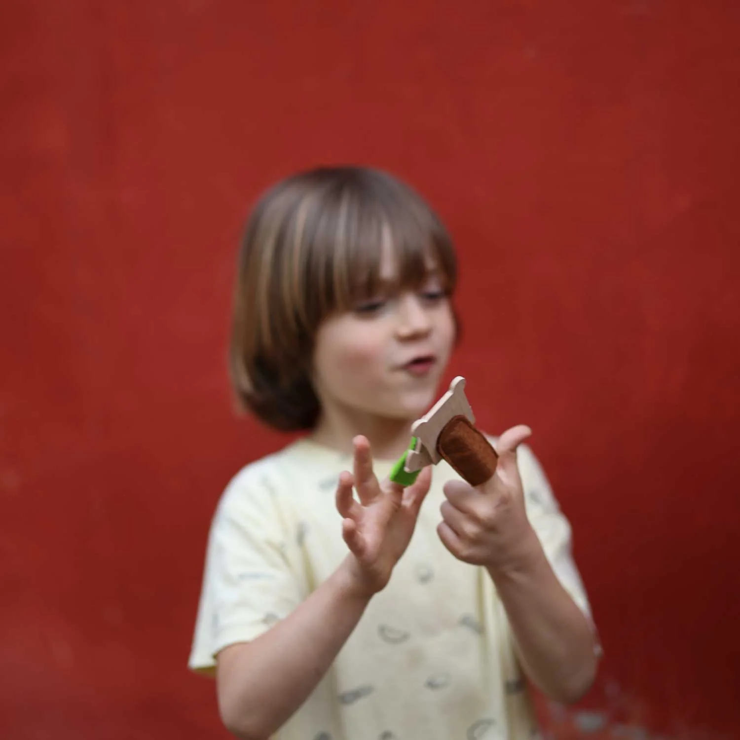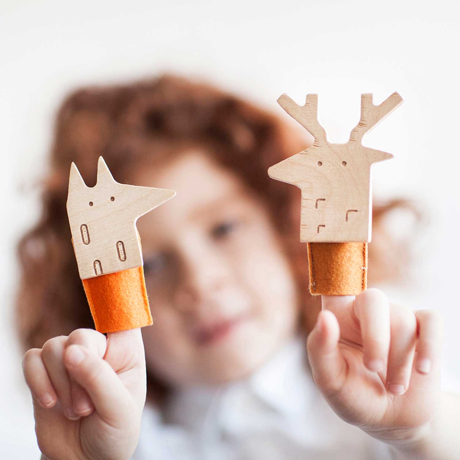 Marionnette à doigts en bois et feutre pour se raconter mille et une histoires – encore et encore!