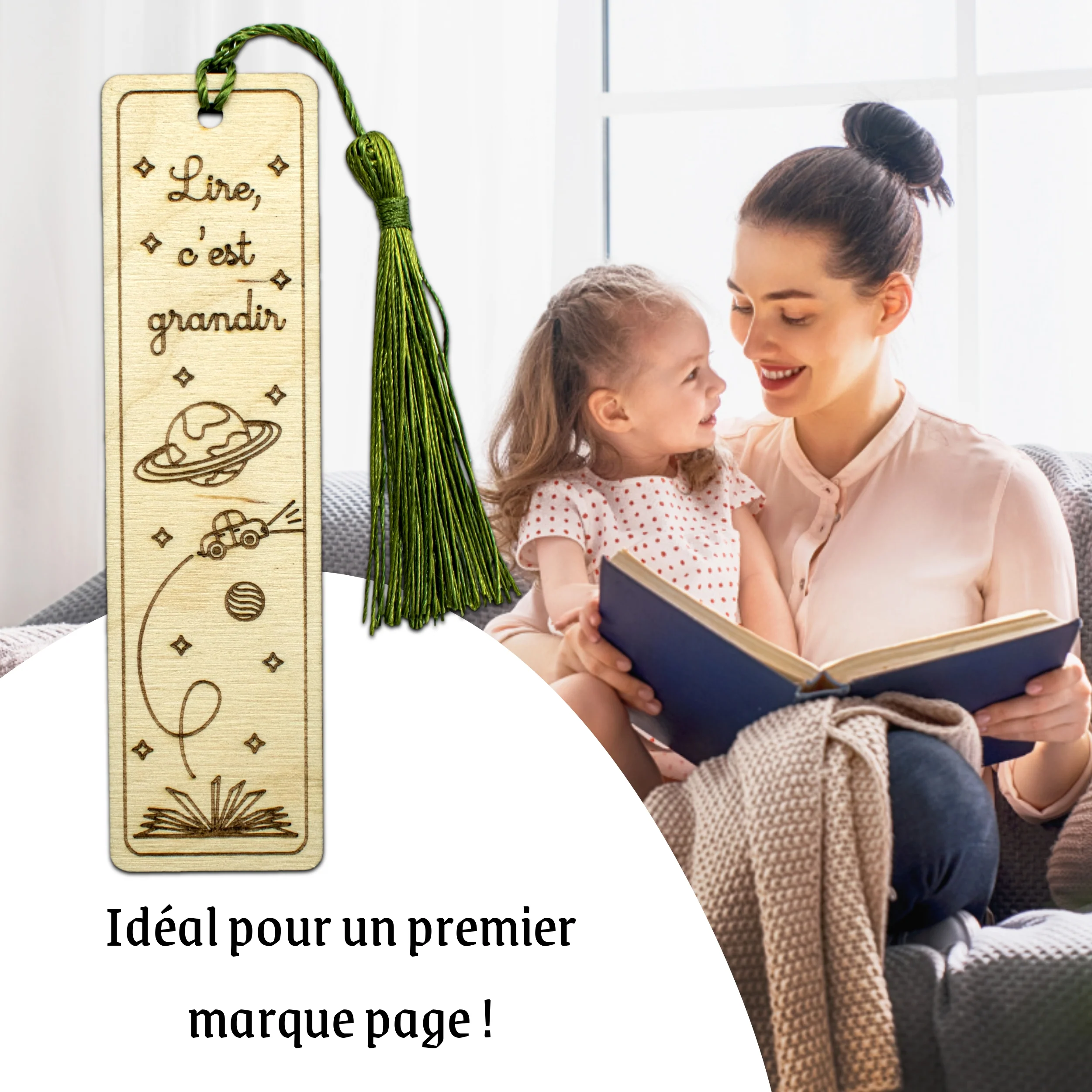 MARQUE-PAGES EN BOIS – ENFANT – LIRE C’EST GRANDIR