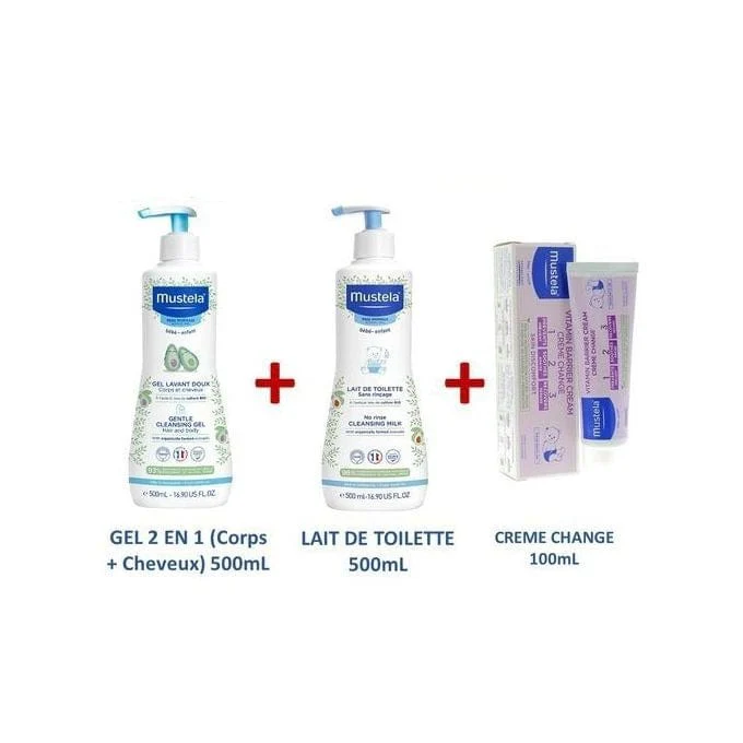 Mustela Bebe PACK LAIT DE TOILETTE (500ml) + GEL NETTOYANT 2EN1 (500ml)+CREME CHANGE (100ml)