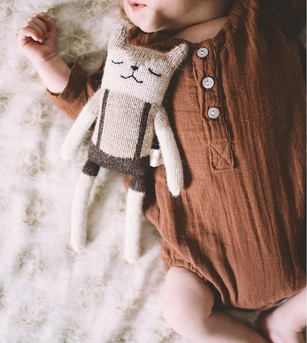 ÂGE: 0+ Ce petit faon mignon tout moelleux est parfait à manipuler pour les petites mains de bébé! Tricot à la main en laine 100% alpaga rembourrage de fibres de bouteilles de plastique recyclées Matière hypoallergénique et antibactérienne couleur naturelle de l’alpaga et teintures écologiques non-toxiques Taille : environ 22cm fabriqué à la main équitablement […]