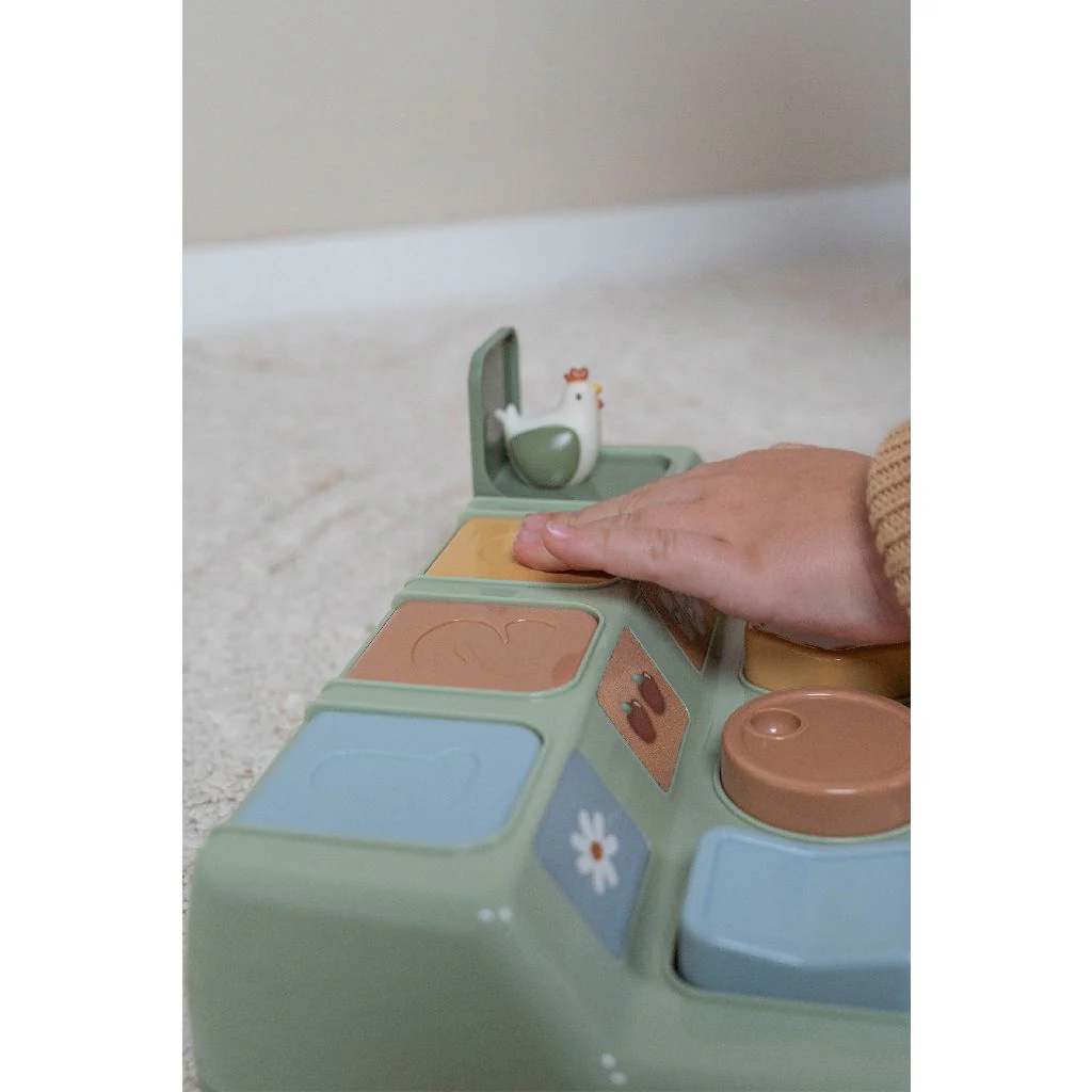 Favorisez l’imagination, la créativité et la motricité de votre enfant avec ce jeu Little Dutch Pop up Farm. Entraîne l’enfant à reconnaître les couleurs et les formes de manière ludique. Appuyez ou tournez les boutons et TADAA un petit animal du thème de la ferme Little Dutch apparaît. Dimensions : 280x77x165mm.