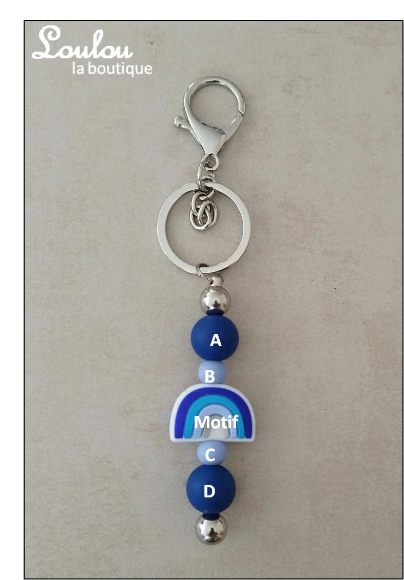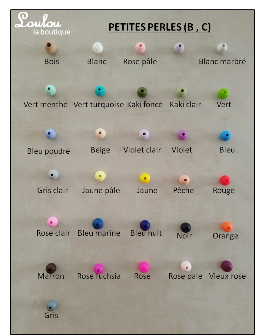 Loulou la boutique vous propose un large panel de couleurs du rose fuchsia au turquoise en passant par le bleu marine. Mariez les comme vous le souhaitez pour concevoir votre porte-clef personnalisé pour être assorti a l’attache tétine de votre enfant. Vous pouvez dorénavant allier le savoir faire de Loulou la boutique avec vos envies les plus folles !