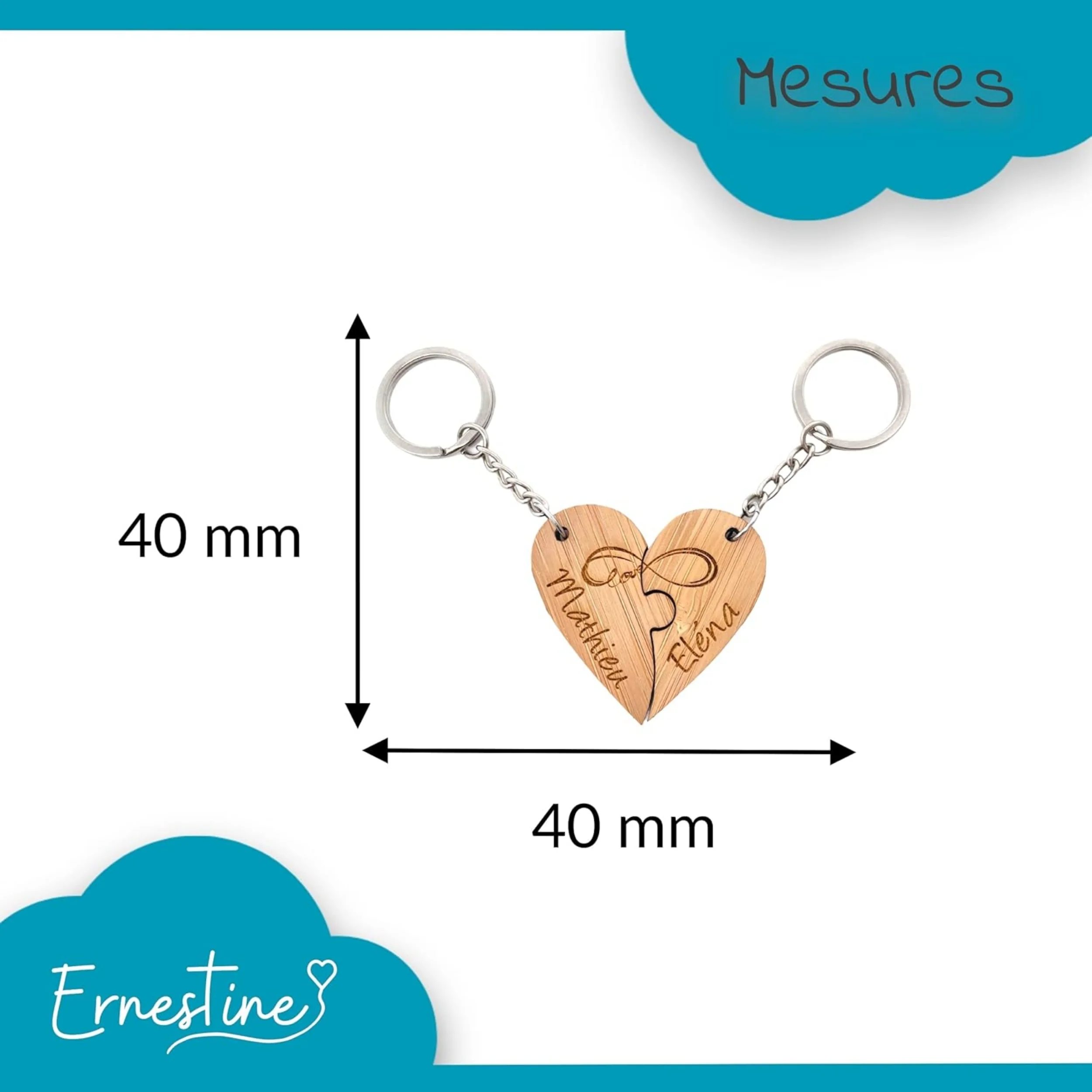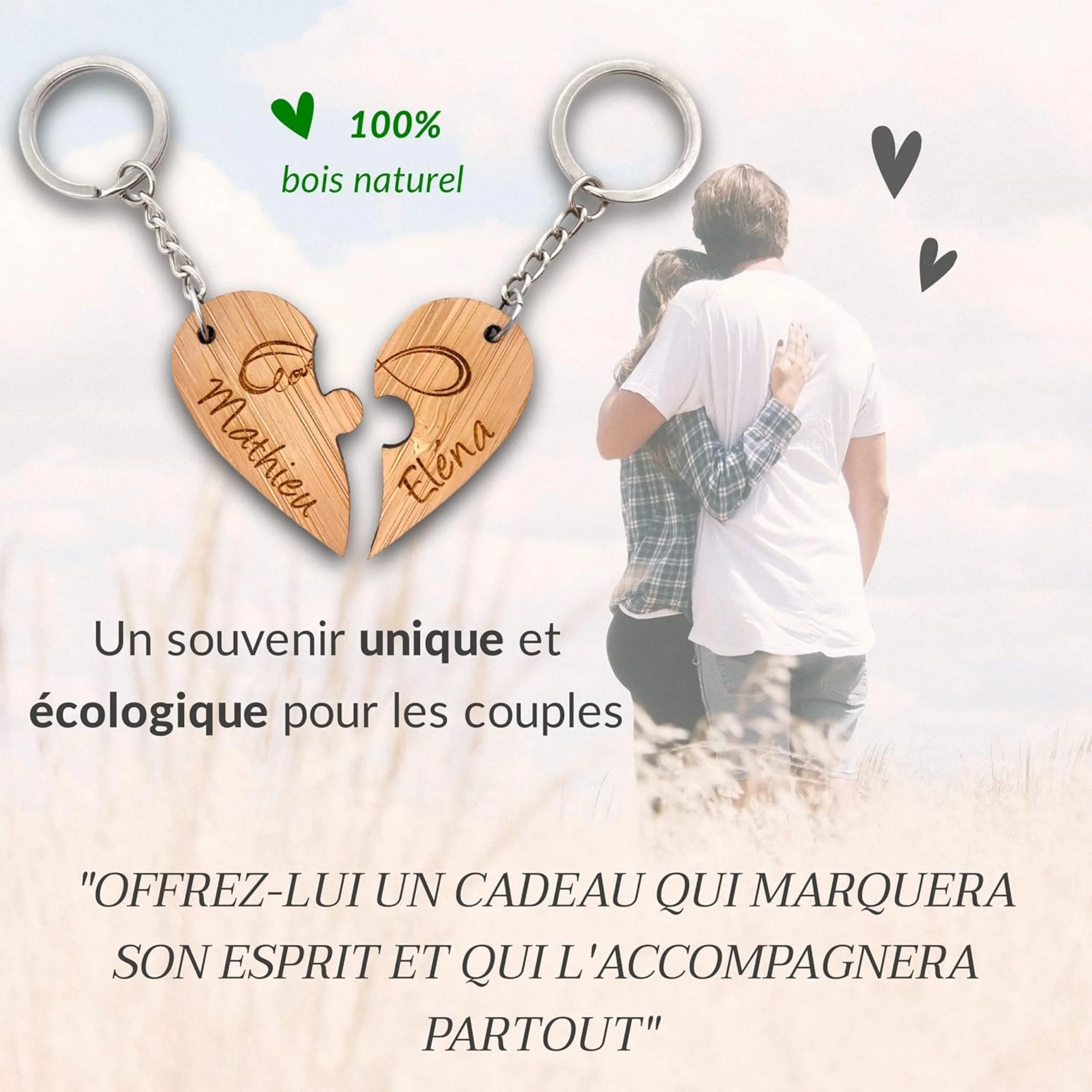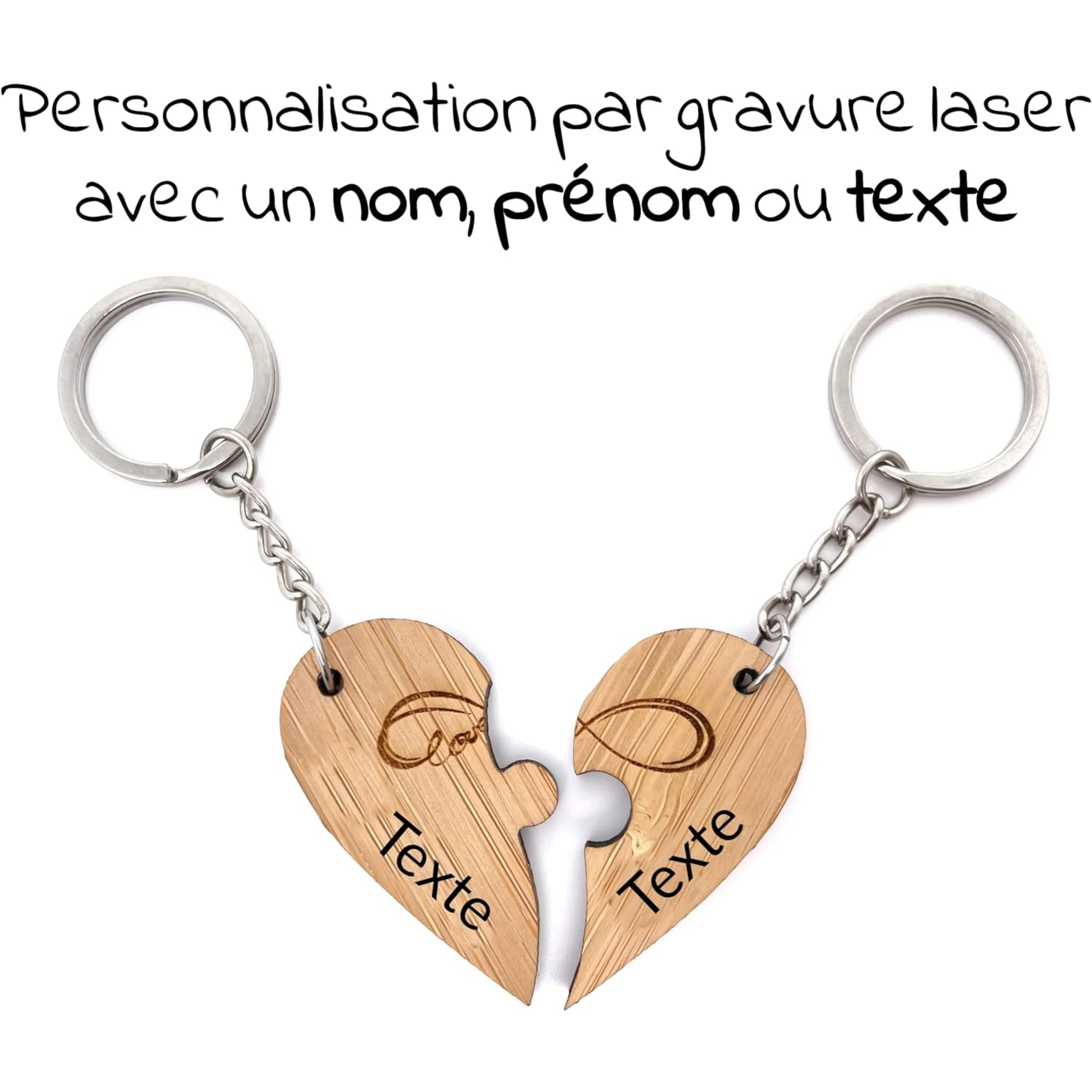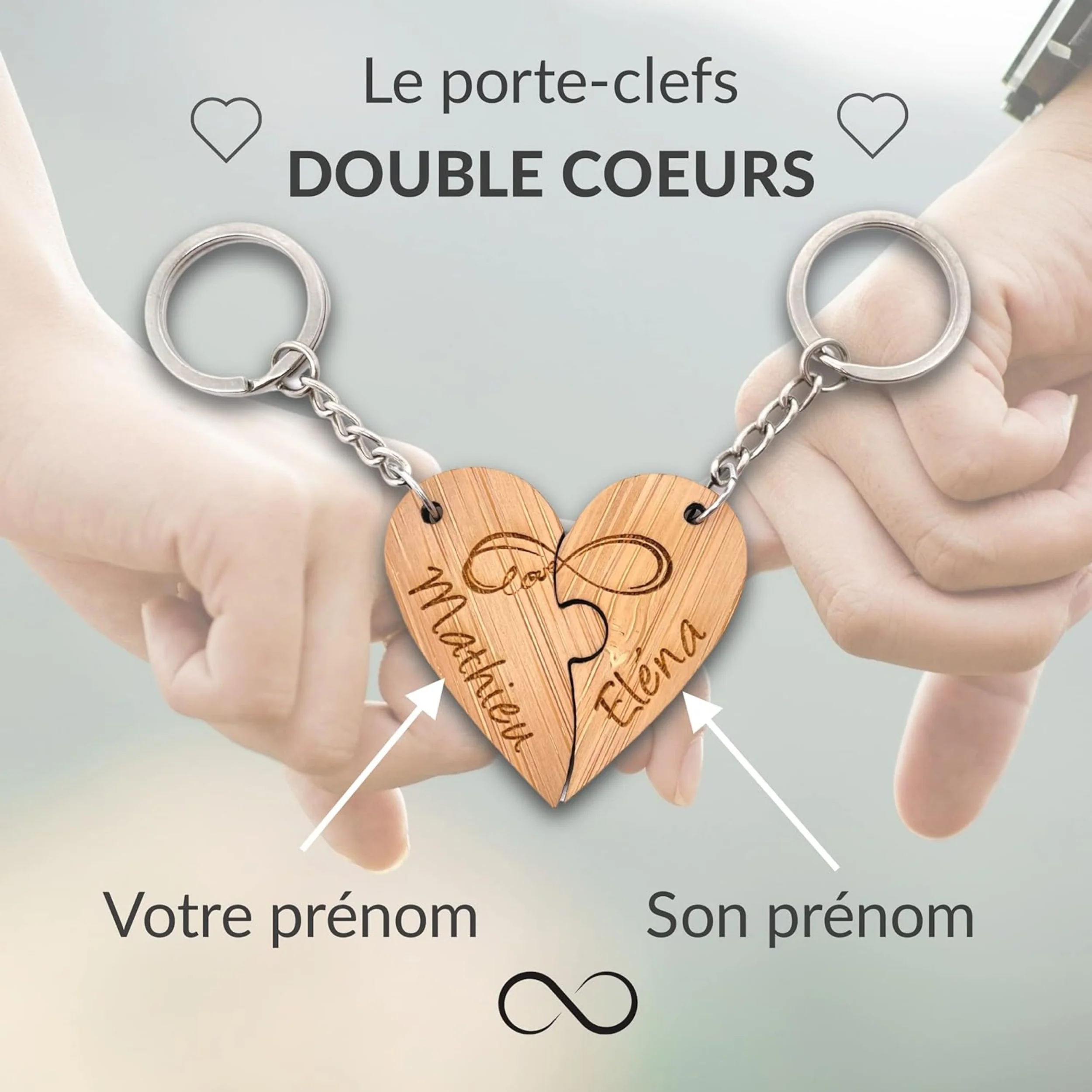 PORTE-CLEFS DOUBLE COEUR BAMBOU – PERSONNALISABLE