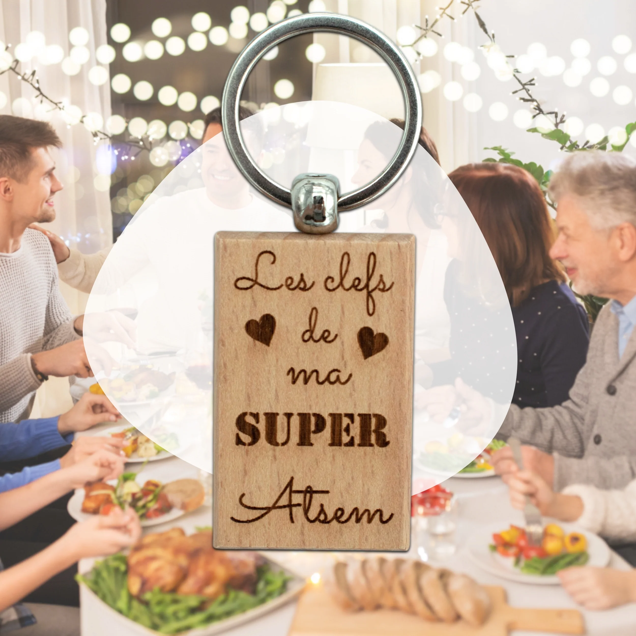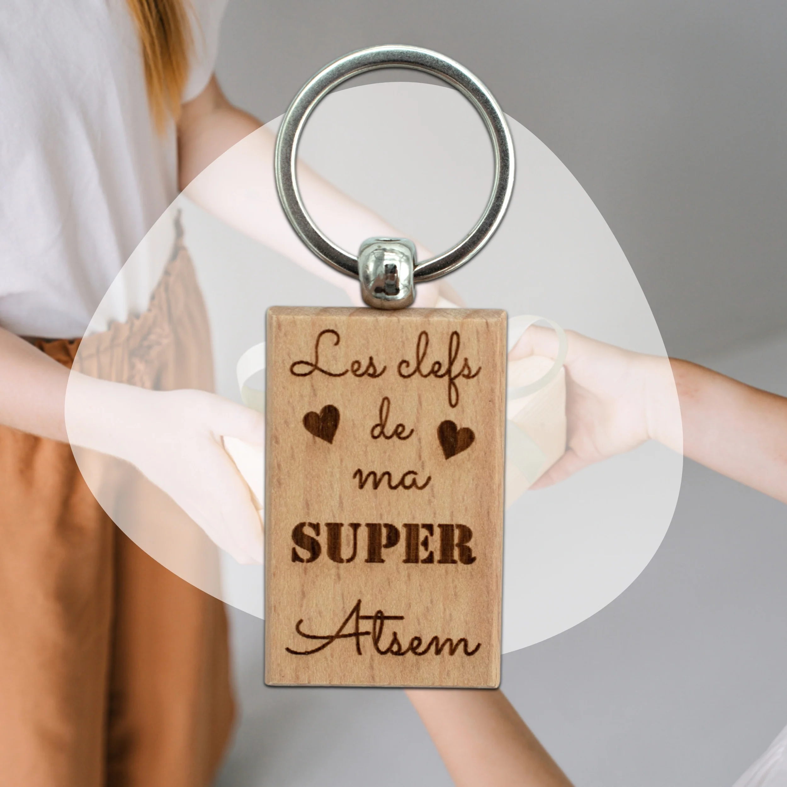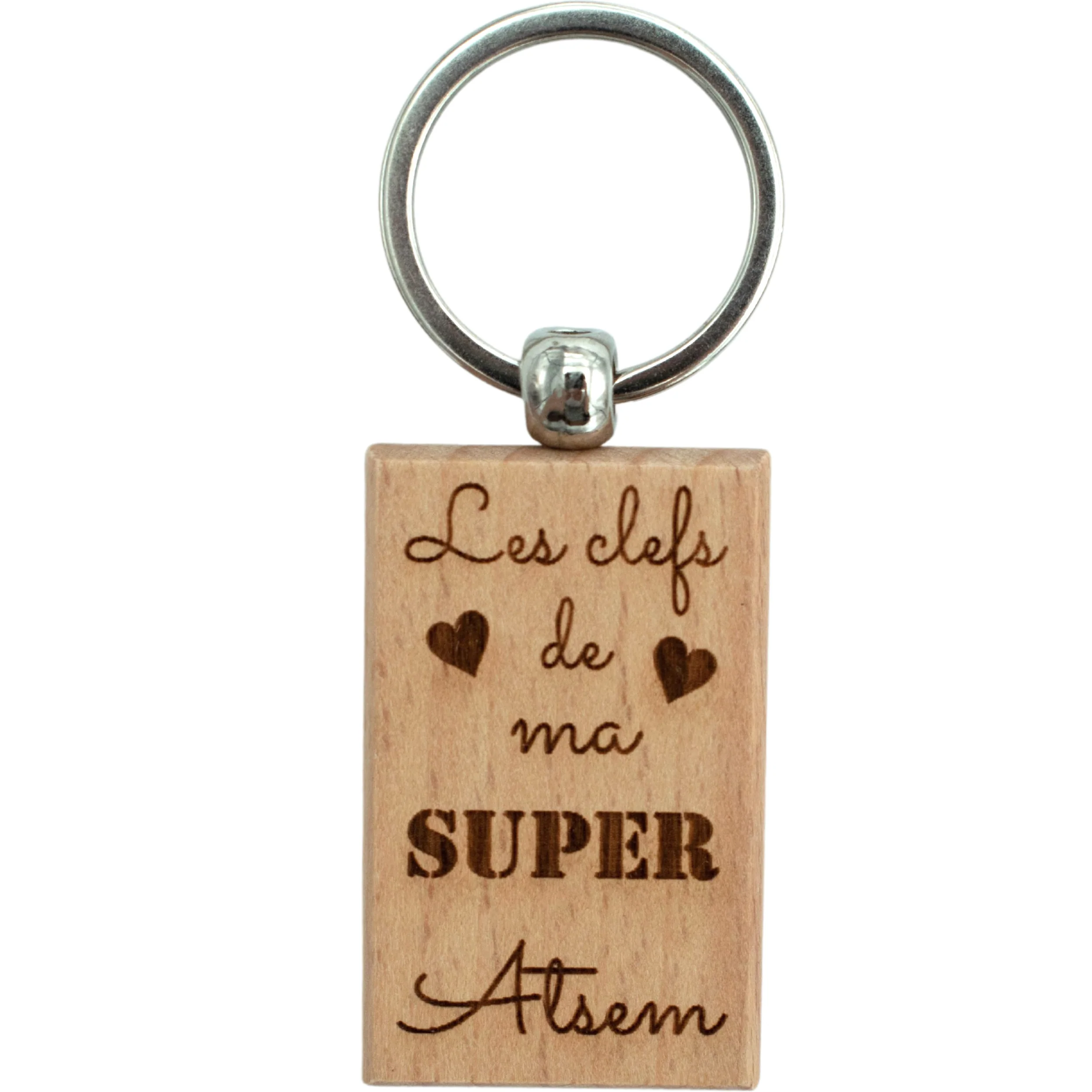 Porte-clefs rectangle en bois – atsem – les clefs