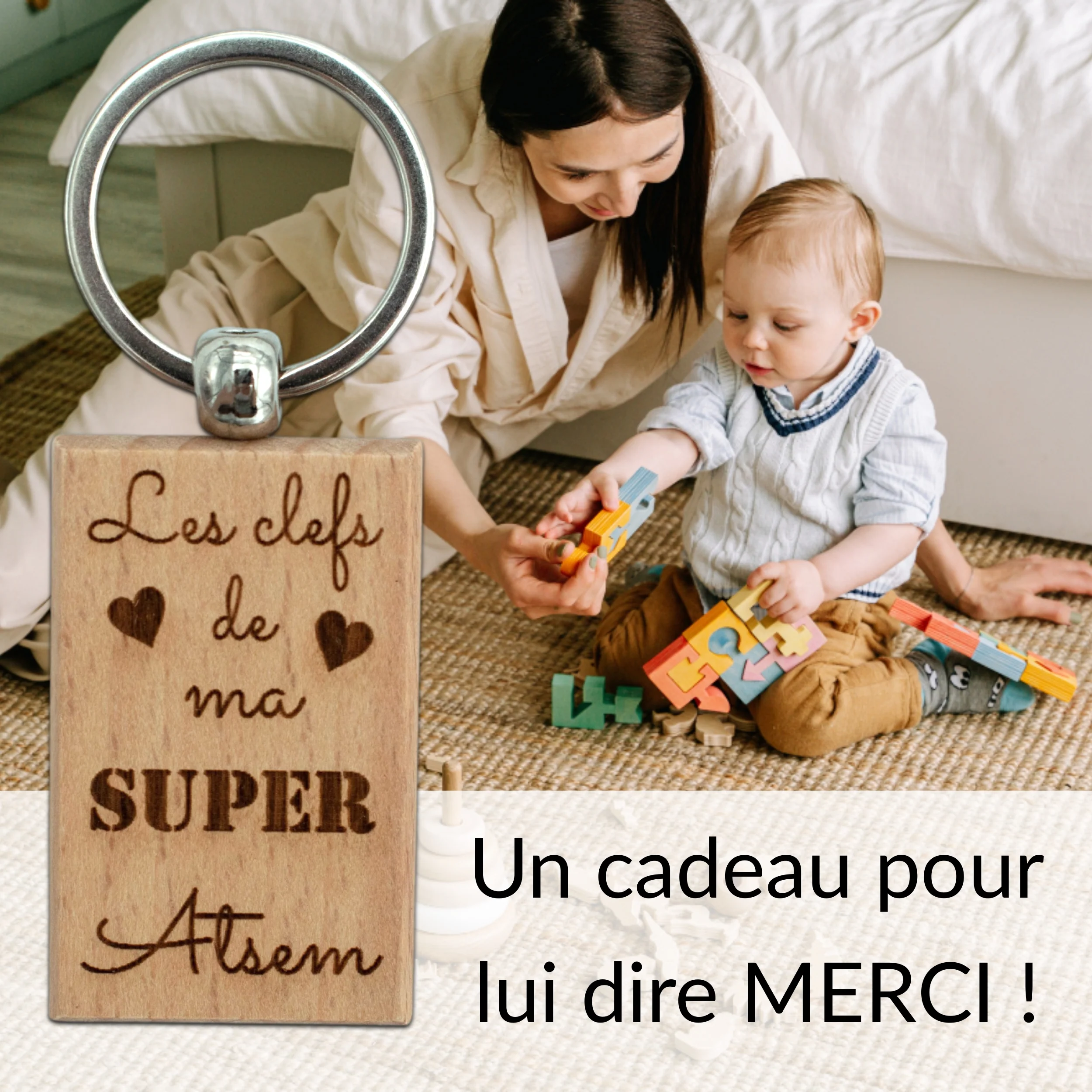 PORTE-CLEFS RECTANGLE EN BOIS – ATSEM – LES CLEFS