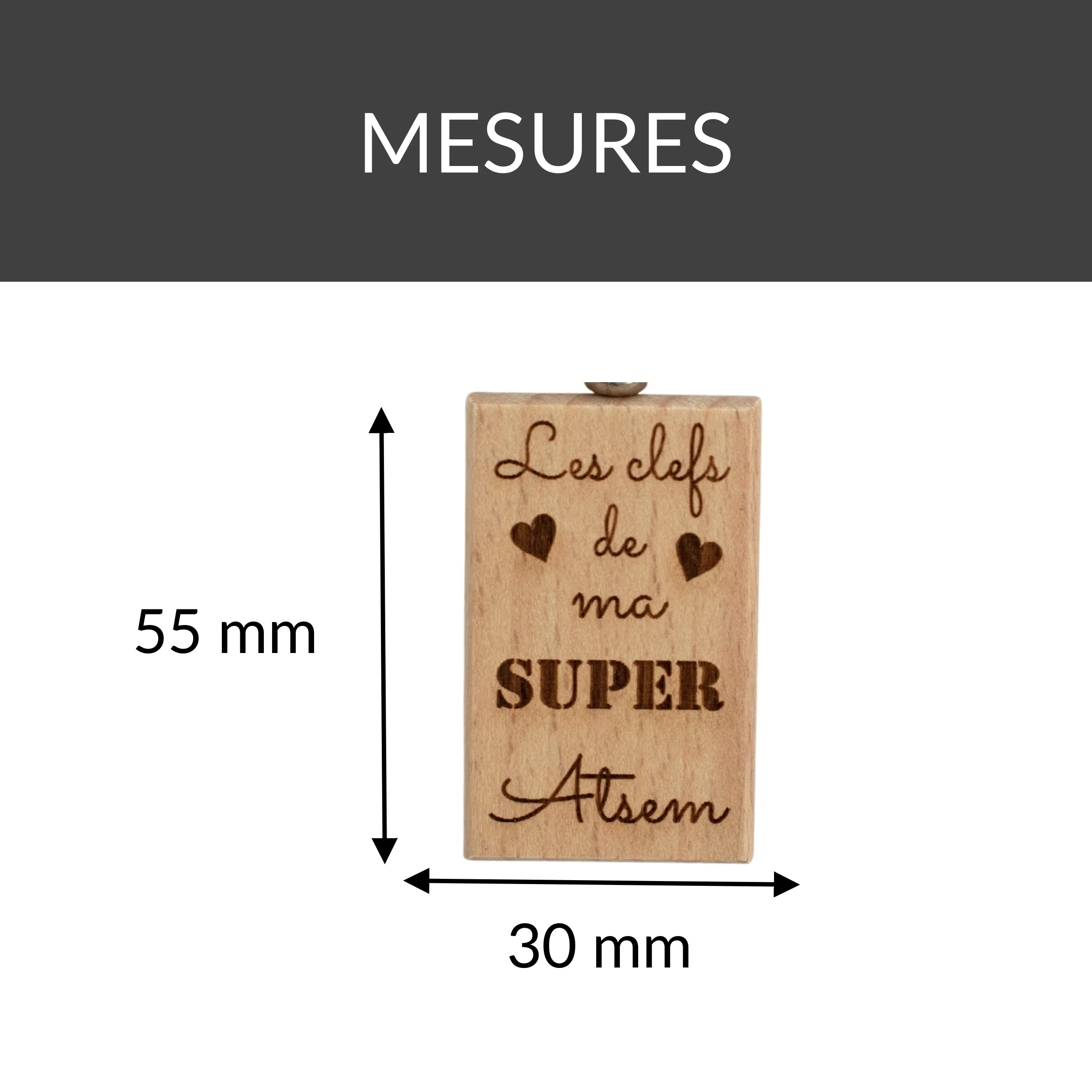 Soyez le premier à laisser votre avis sur “PORTE-CLEFS RECTANGLE EN BOIS – ATSEM – LES CLEFS”