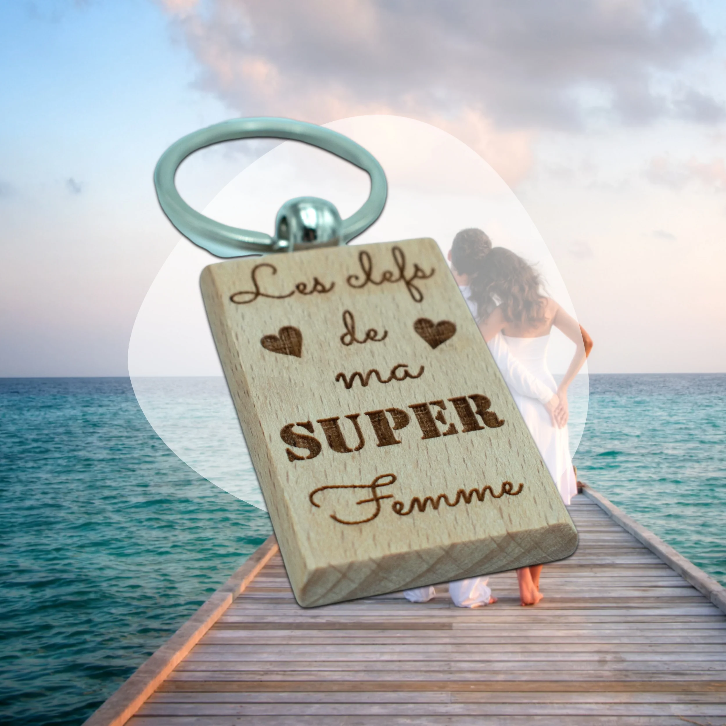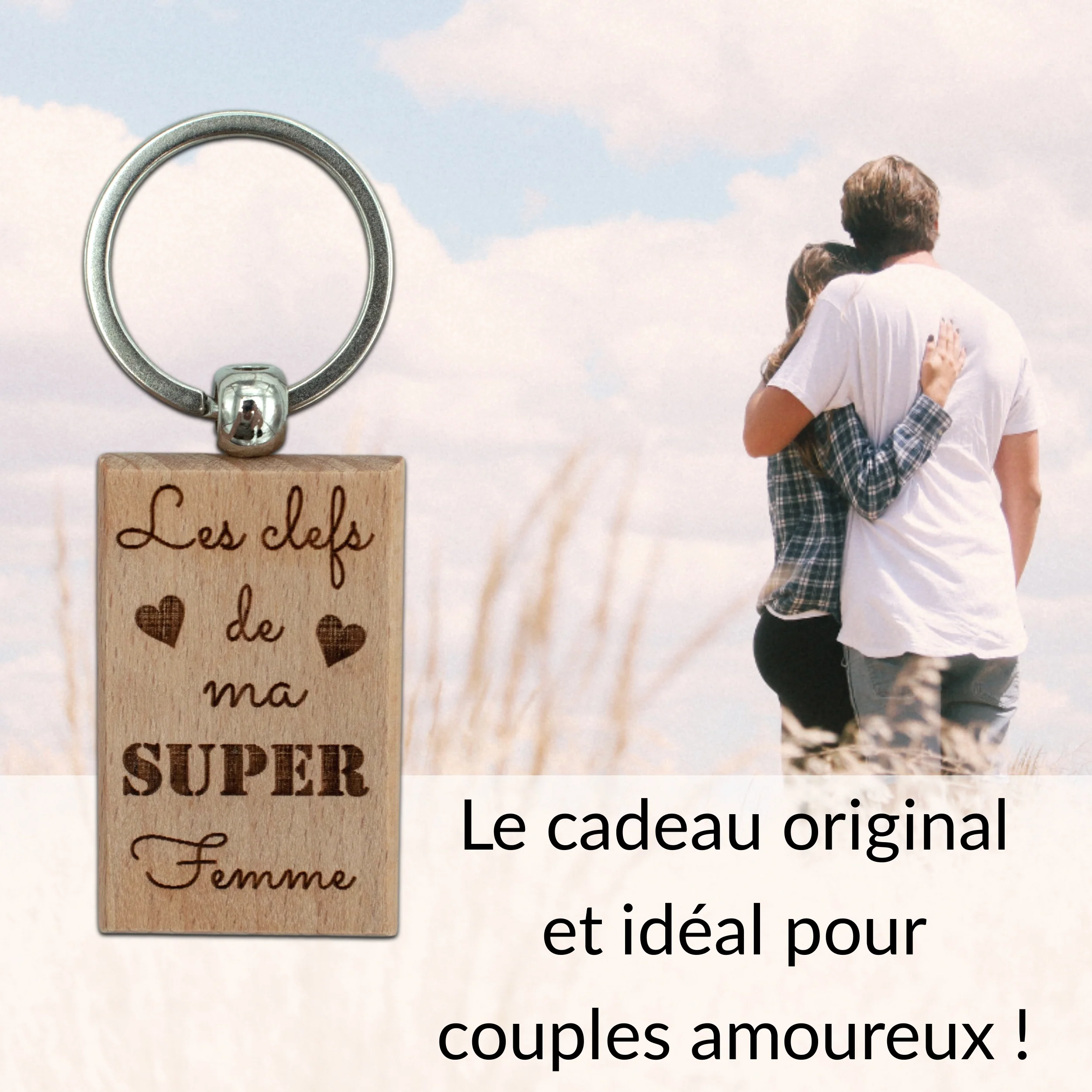 PORTE-CLEFS RECTANGLE EN BOIS – FEMME – LES CLEFS