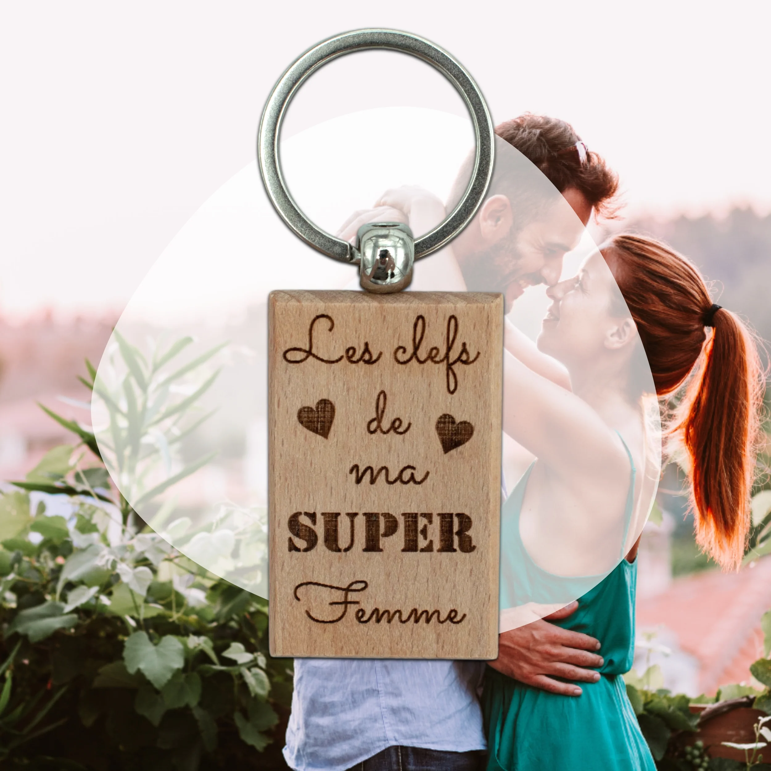 Porte-clefs rectangle en bois – femme – les clefs