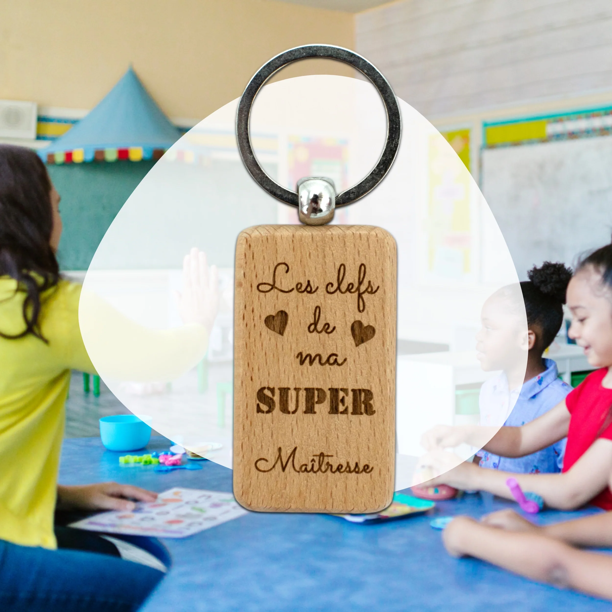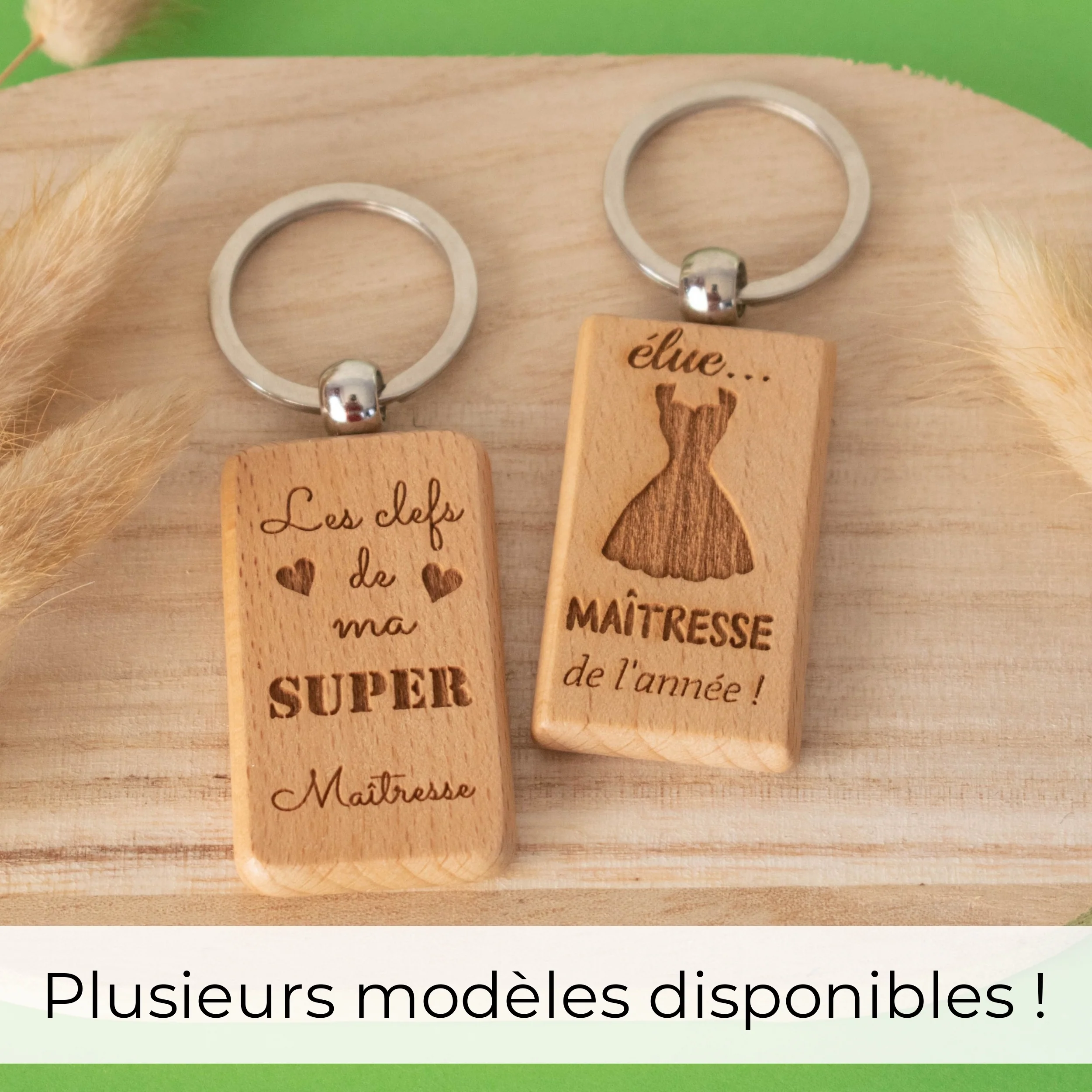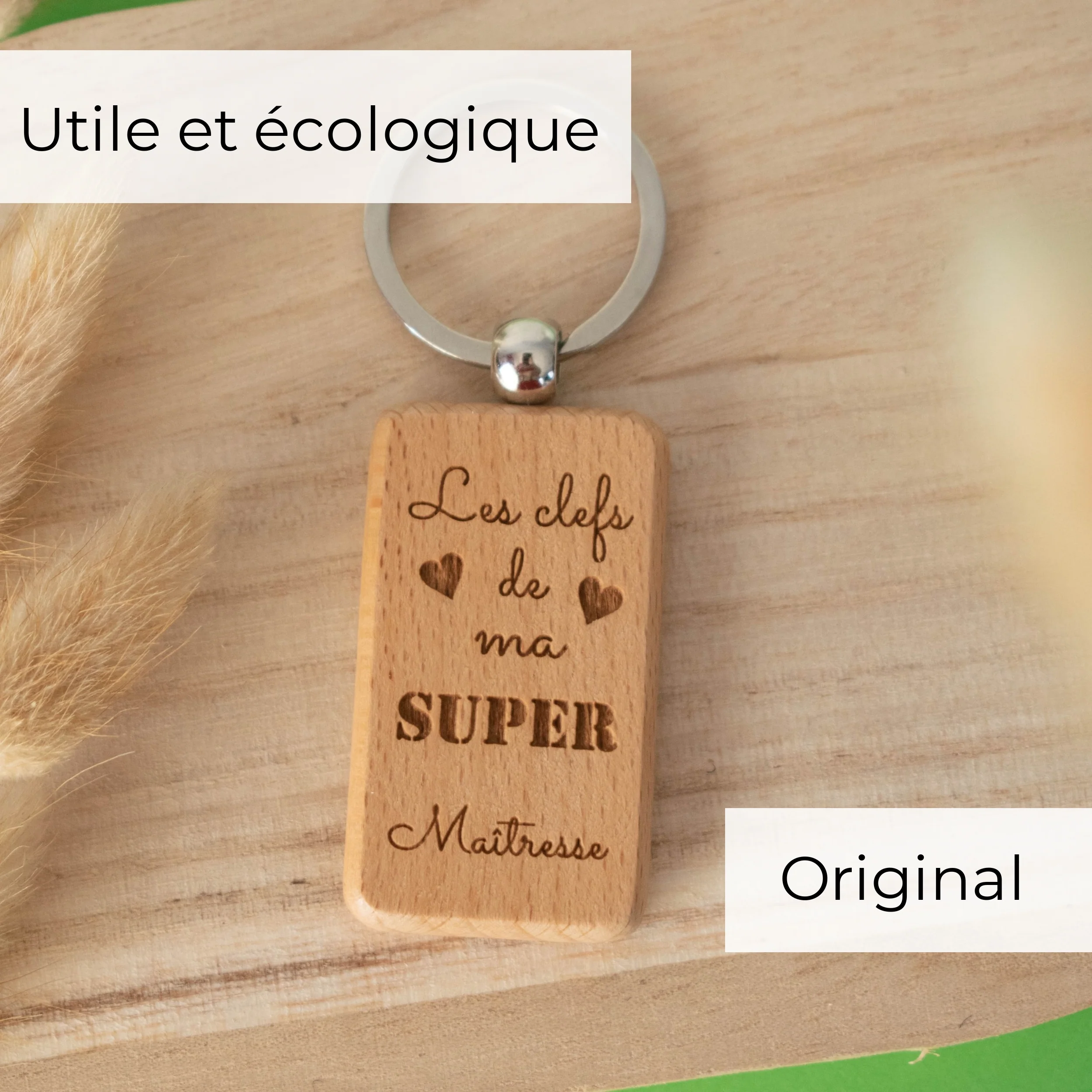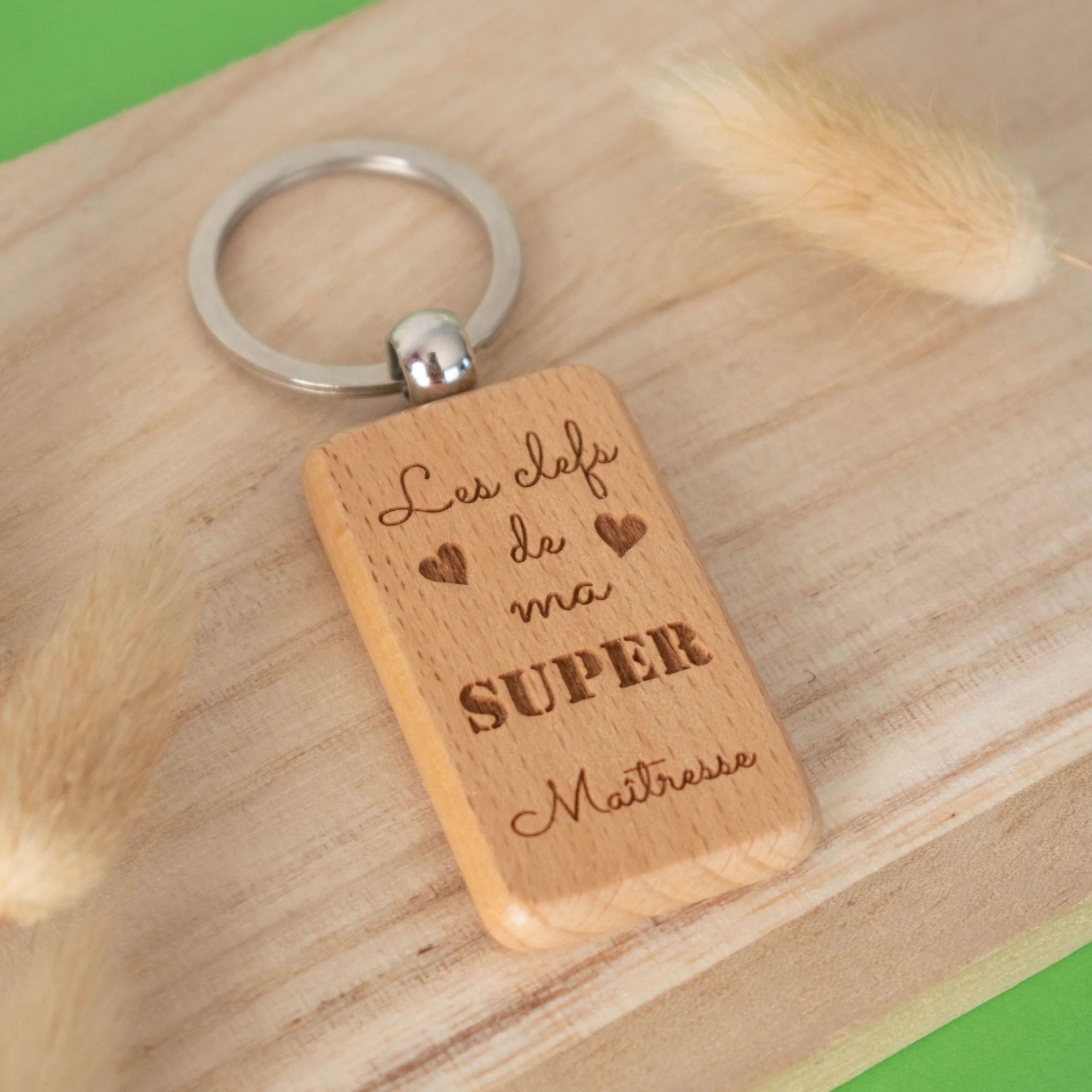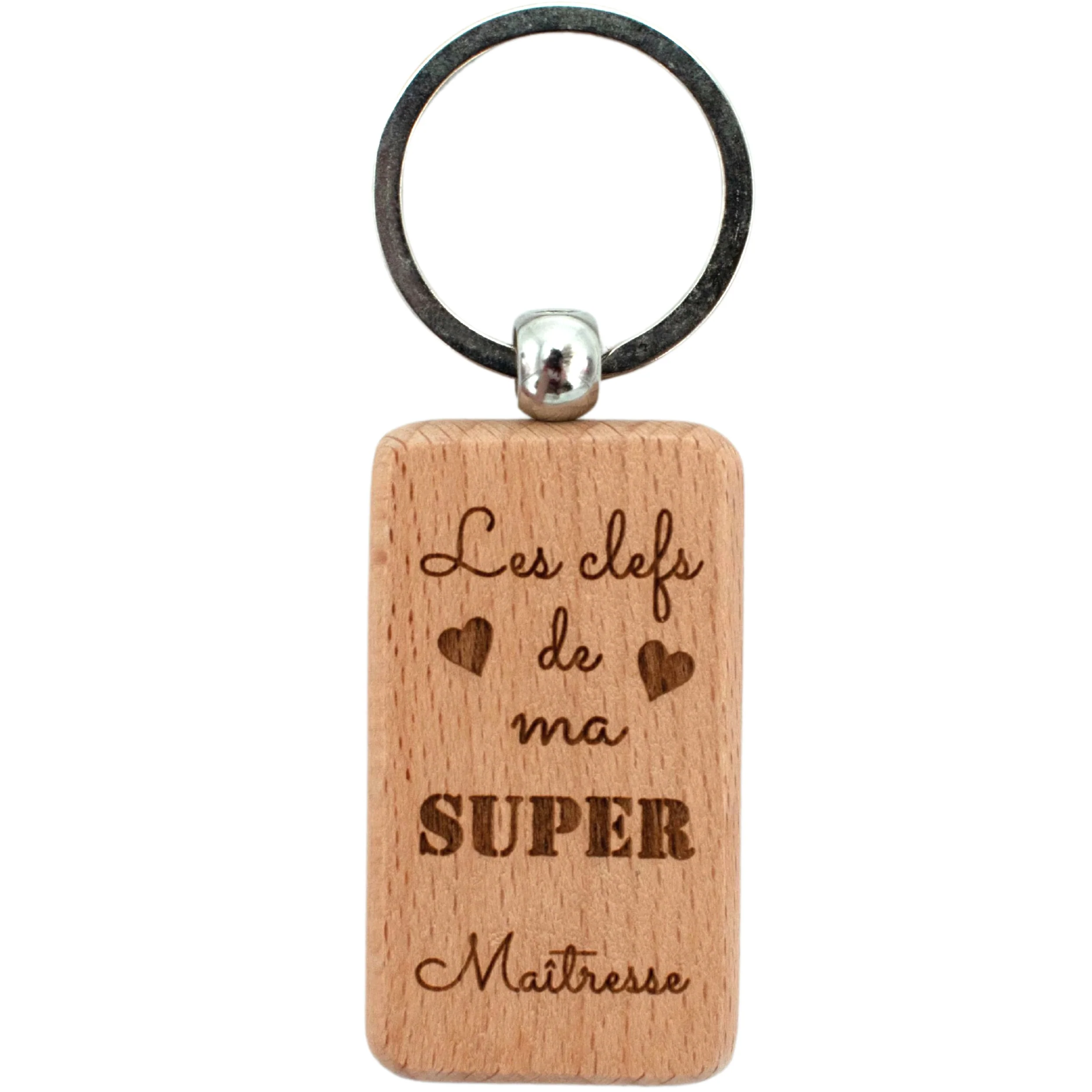 Porte-clefs rectangle en bois – maitresse – les clefs de ma super maitresse