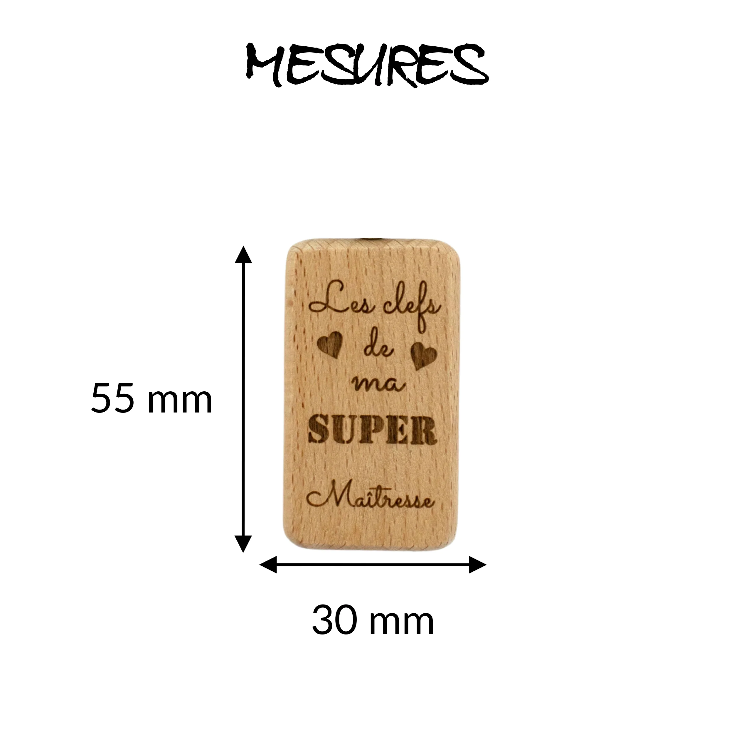 PORTE-CLEFS RECTANGLE EN BOIS – MAITRESSE – LES CLEFS DE MA SUPER MAITRESSE