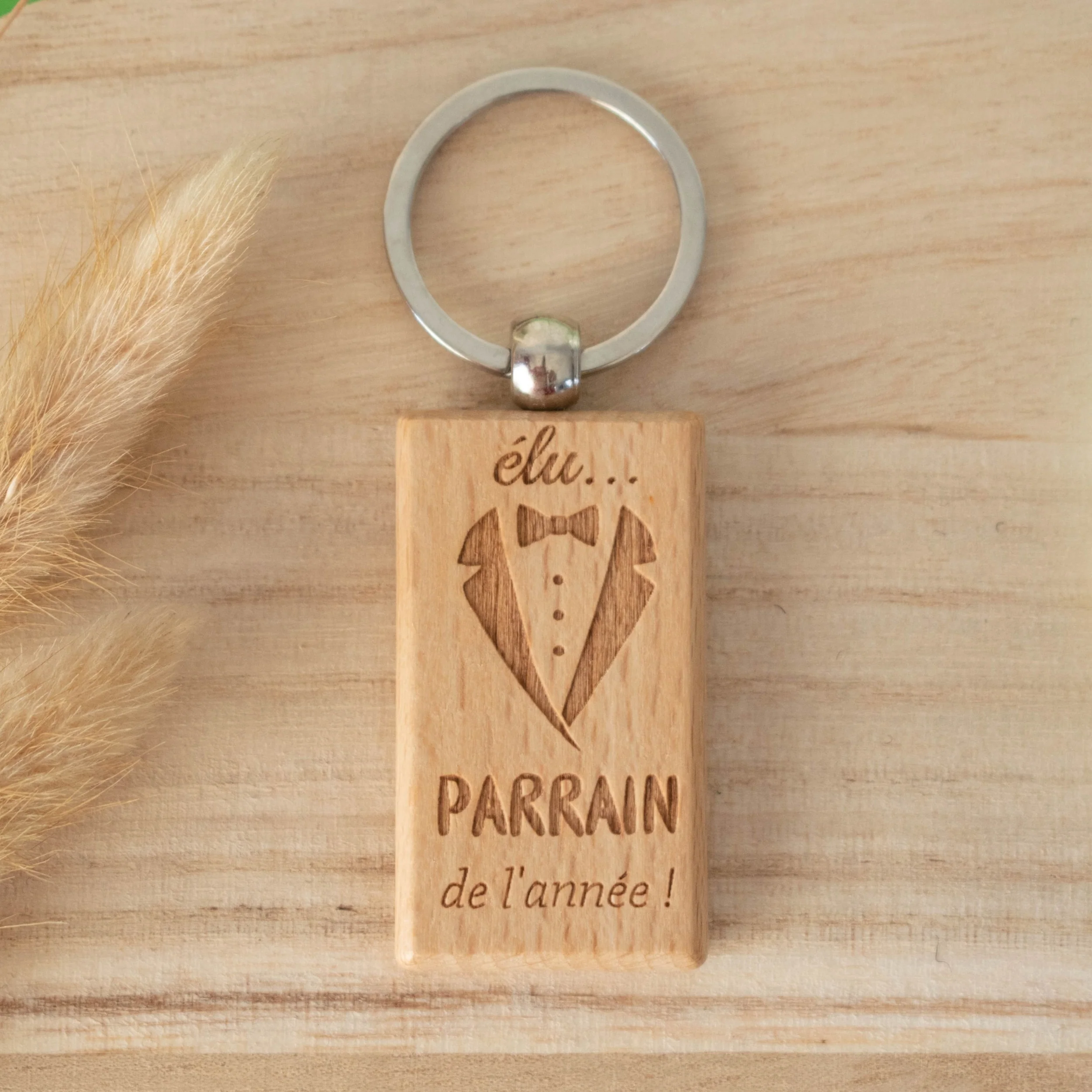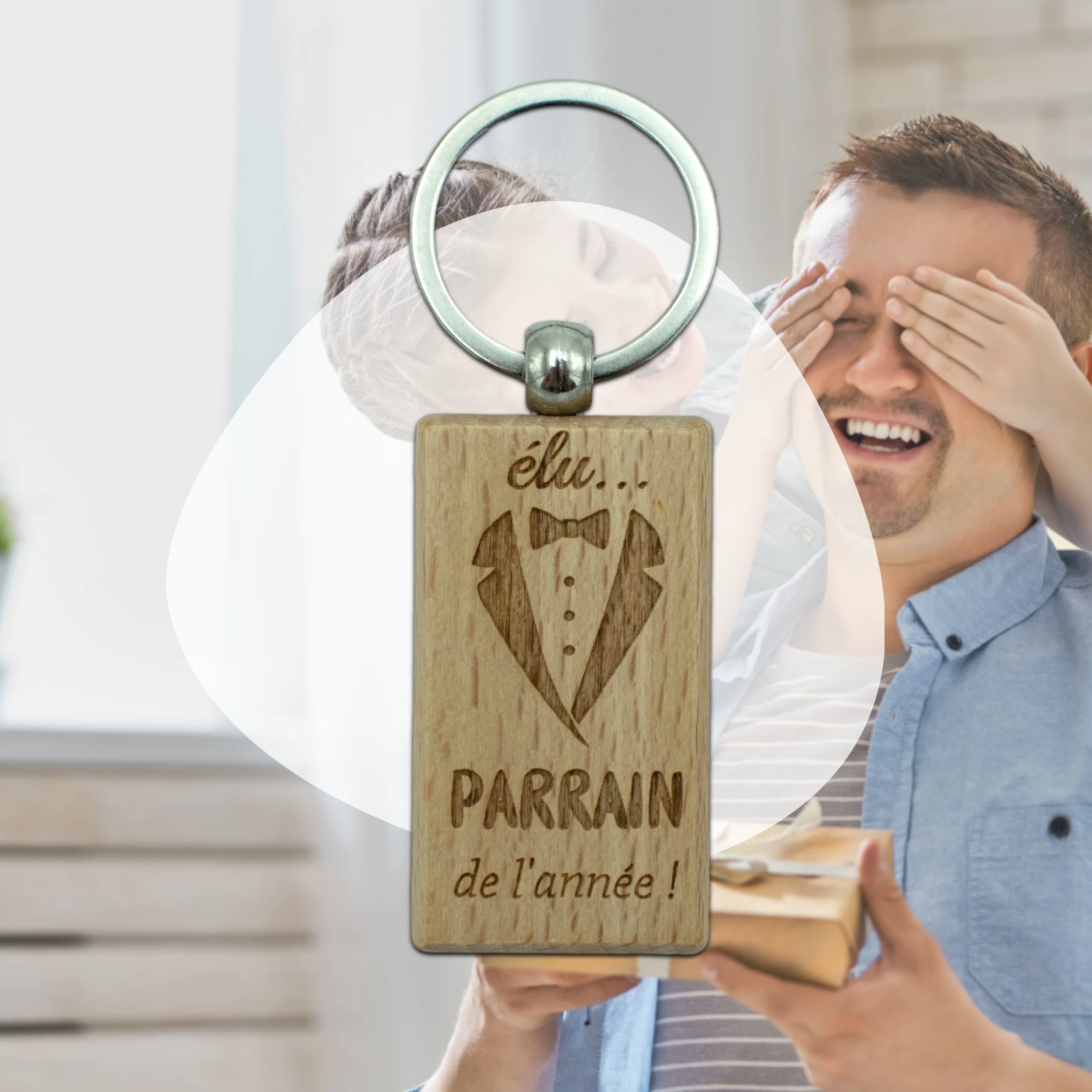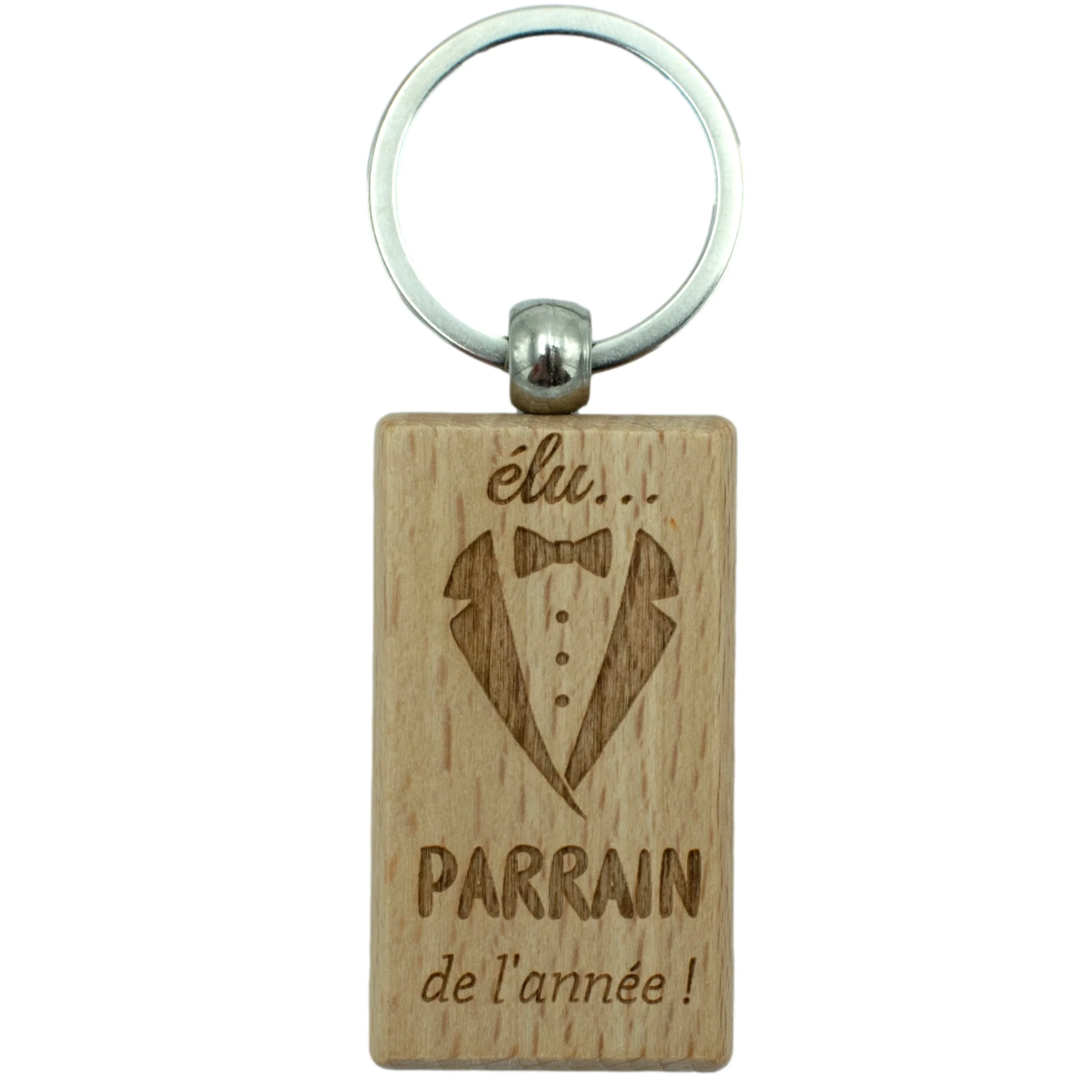 PORTE-CLEFS RECTANGLE EN BOIS – PARRAIN – ELU