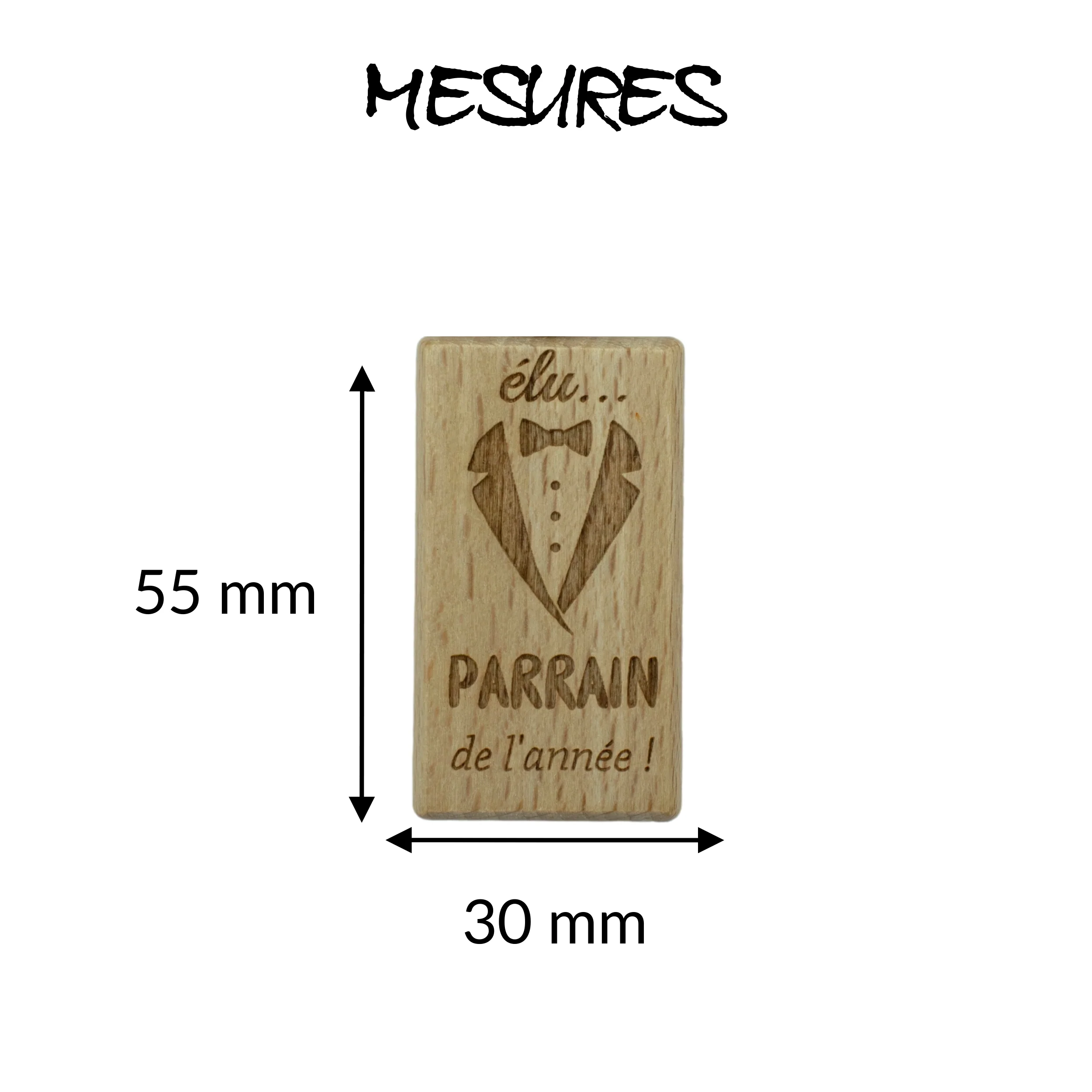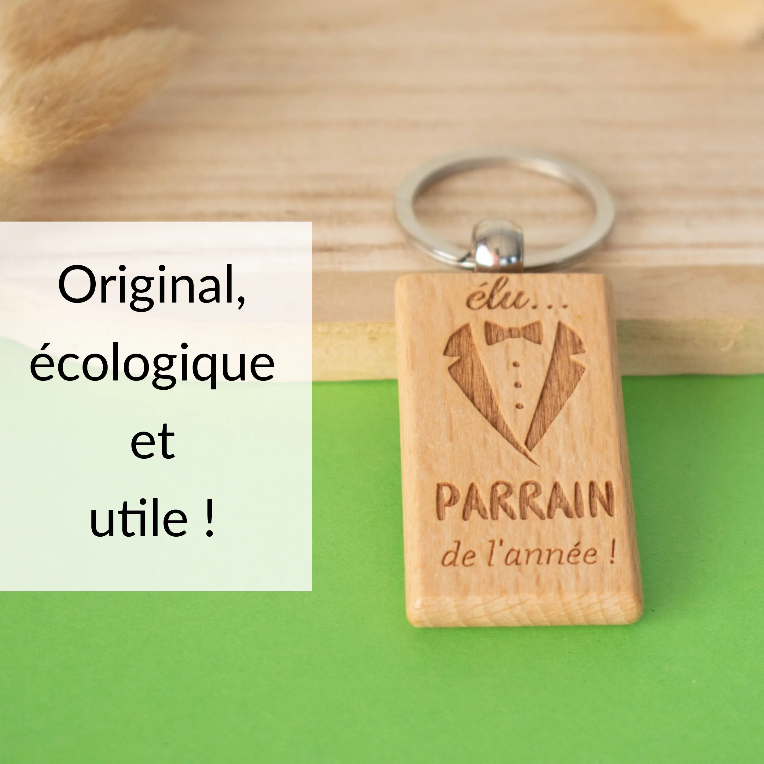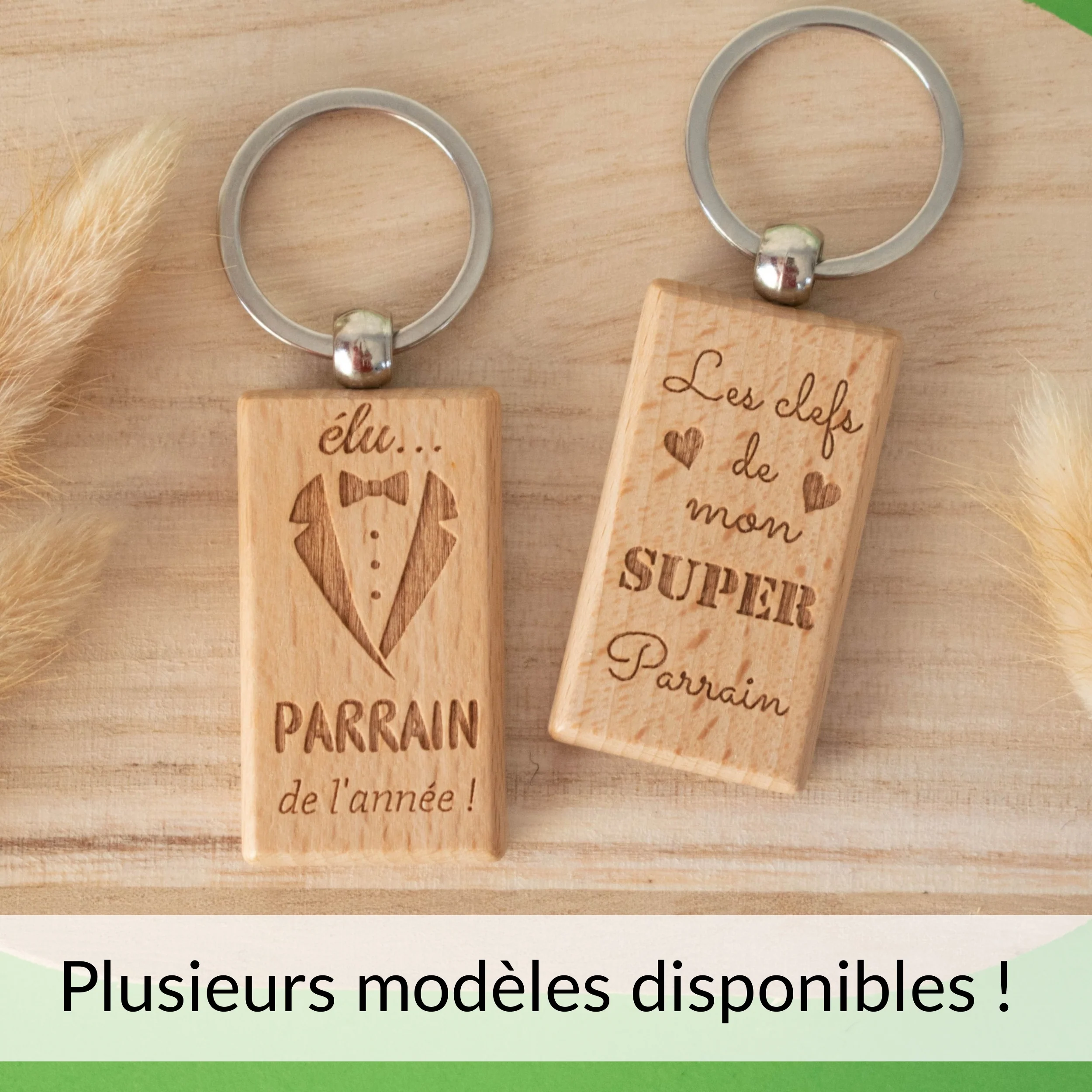 PORTE-CLEFS RECTANGLE EN BOIS – PARRAIN – ELU