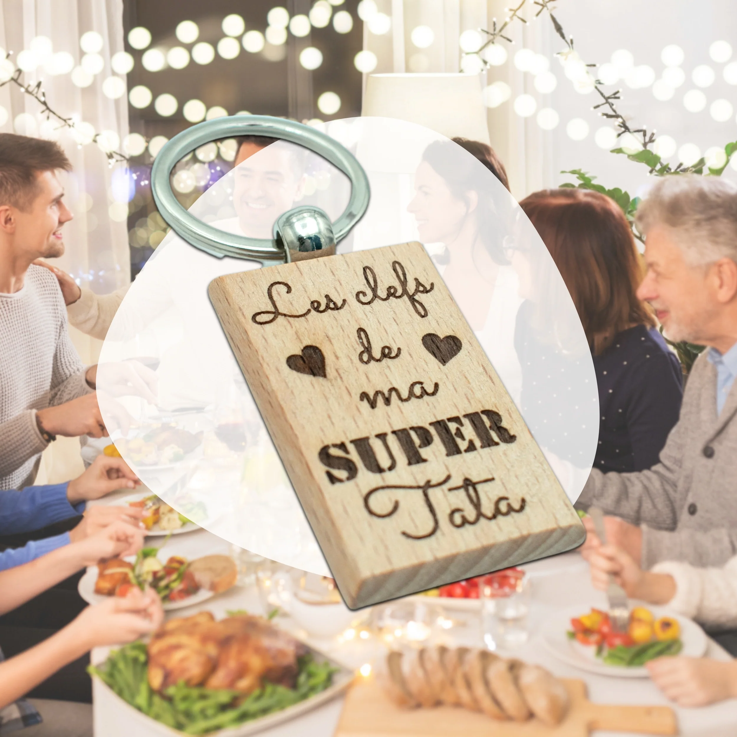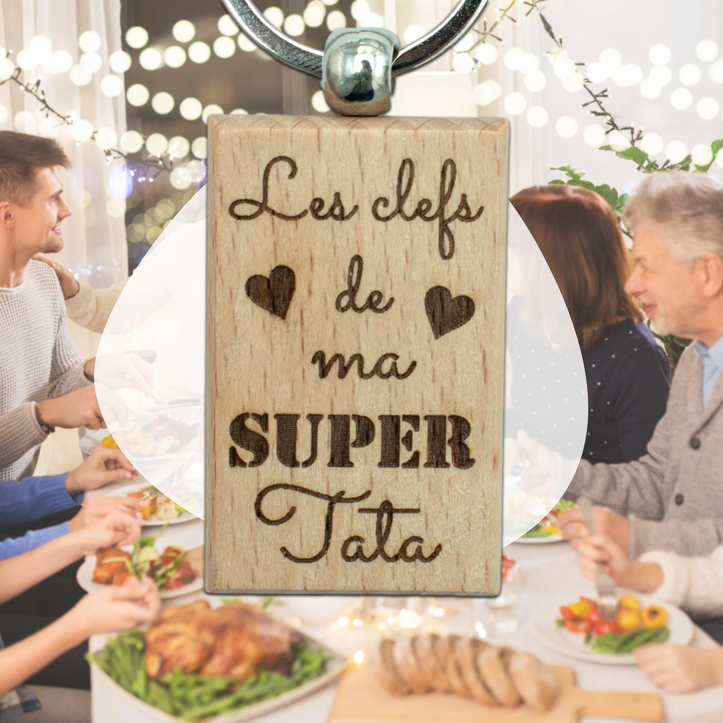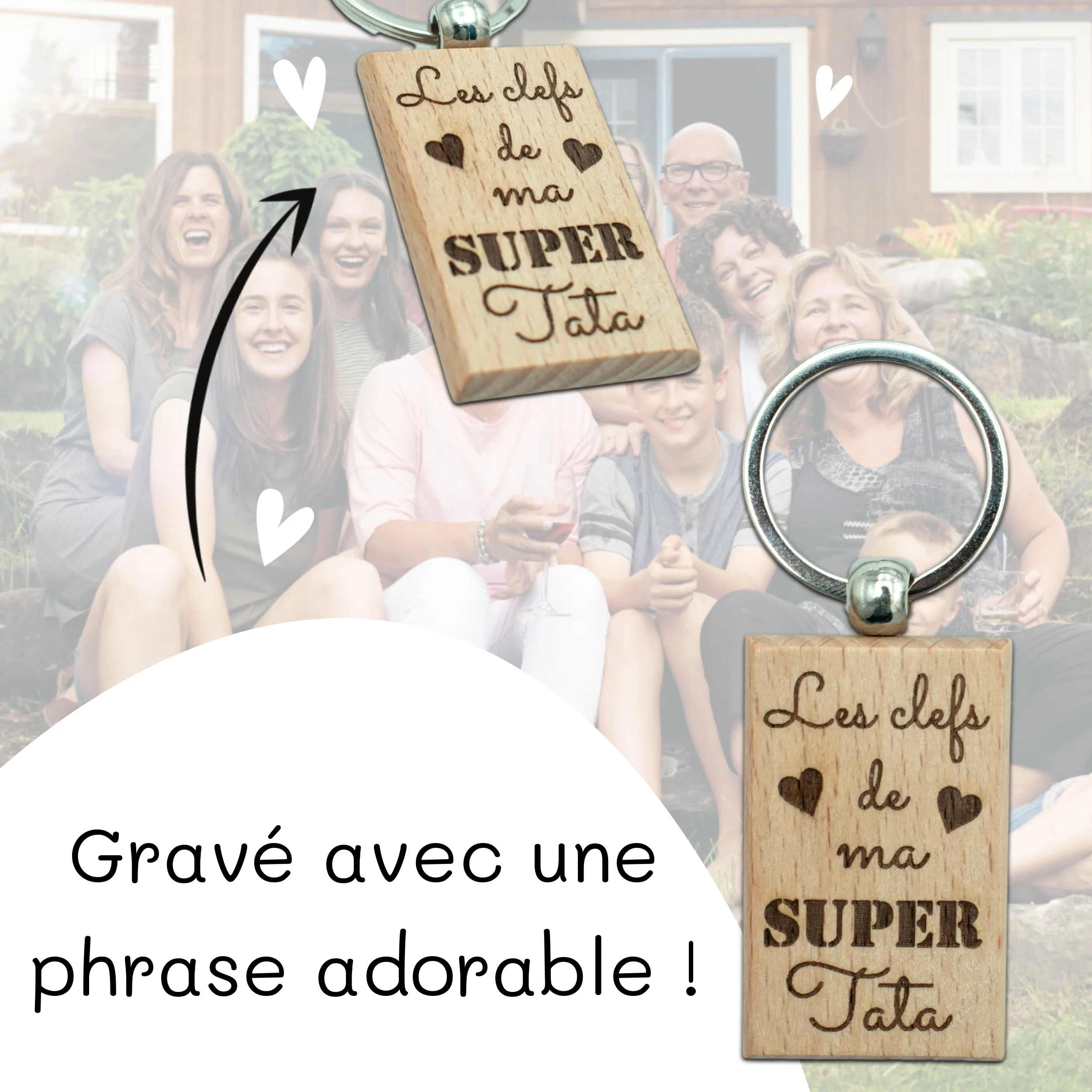 Porte-clefs rectangle en bois – tata – les clefs de mon super tata